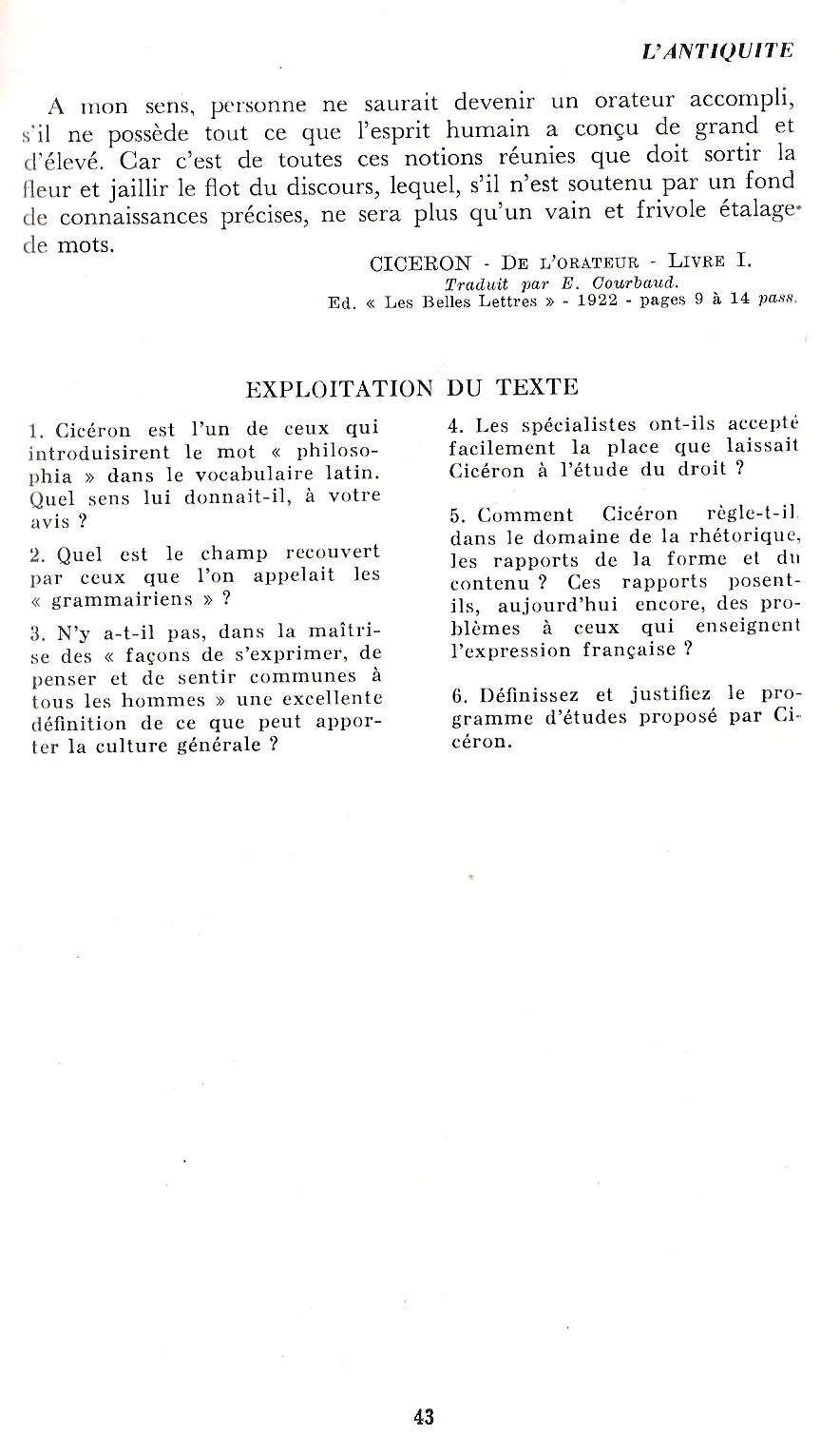 Quintilien : Éloge de l'enseignement collectif - La partie « littéraire » de l'enseignement du grammairien - La partie « générale » de l'enseignement du grammairien - Le problème des « aptitudes »