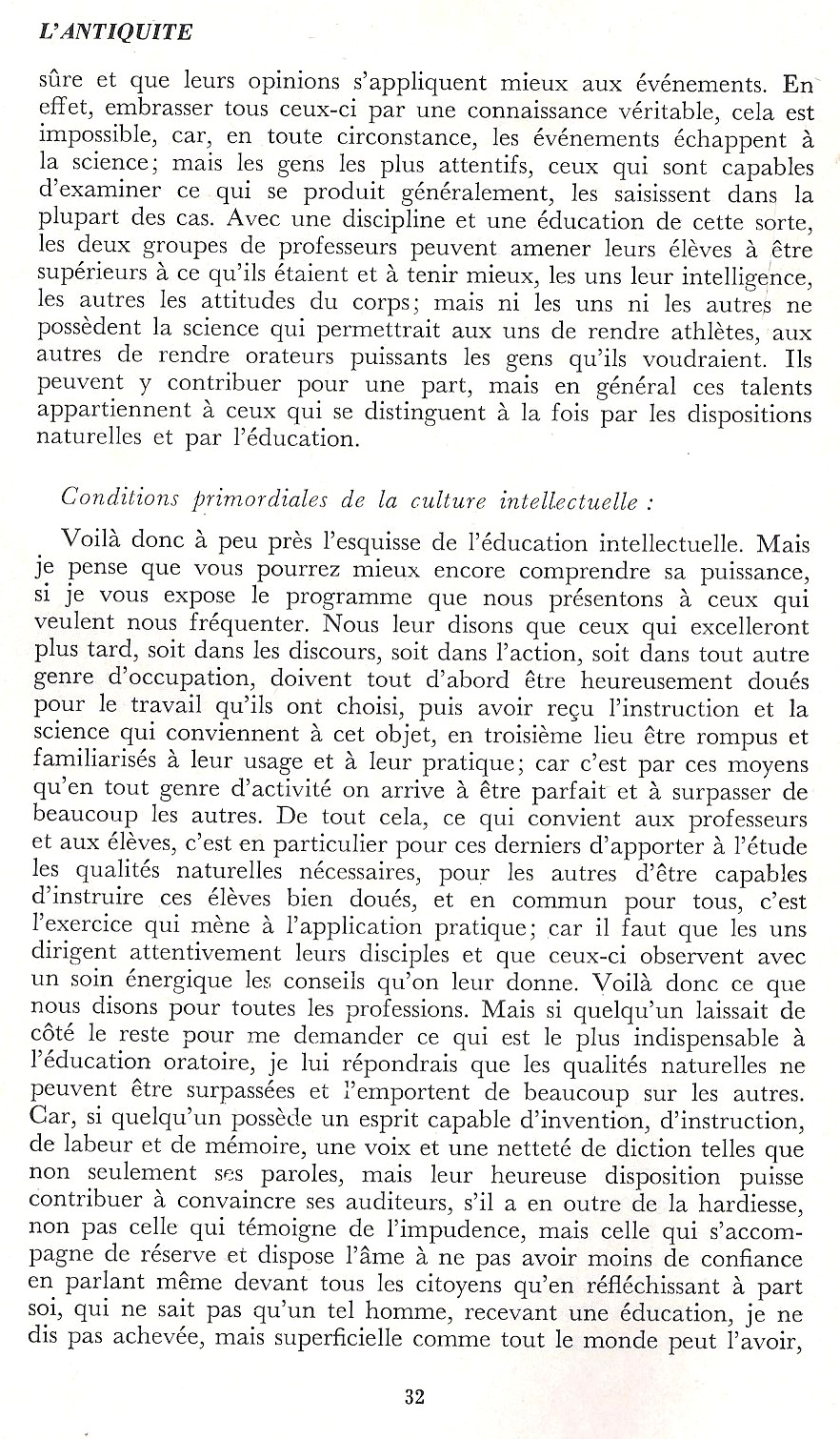 Quintilien : Éloge de l'enseignement collectif - La partie « littéraire » de l'enseignement du grammairien - La partie « générale » de l'enseignement du grammairien - Le problème des « aptitudes »