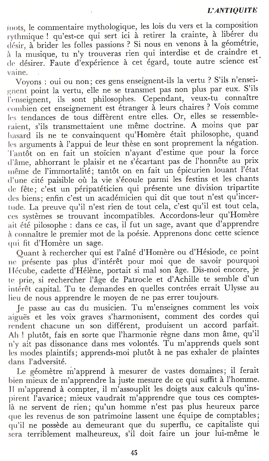 Quintilien : Éloge de l'enseignement collectif - La partie « littéraire » de l'enseignement du grammairien - La partie « générale » de l'enseignement du grammairien - Le problème des « aptitudes »