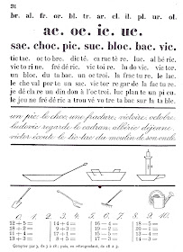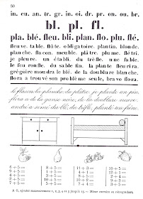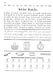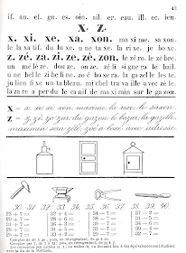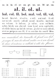La méthode Boscher a reçu la médaille de bronze en 1958, à l'Exposition Internationale de Bruxelles, vous devinez donc sans peine qu'elle n'est pas toute jeune. C'est vrai, sa première édition date de 1906. Les illustrations sont définitivement désuètes: la cabane du sabotier, le cheval qui tire la charrue, le semeur, et Toinon qui garde ses oies... pas de doutes, on fait un petit voyage dans le temps à chaque page. Mais bon, je ne peux pas dire que ce soit réellement un handicap. Les textes courts qui figurent dans les dernières pages du livre ont également un goût de madeleine... on y retrouve pêle-mêle le "Roman de Renard", des extraits des contes de Perrault, d'Andersen, de "La Chèvre de Monsieur Seguin", et de jolies poésies. La préface de la méthode Boscher est également fort bien rédigée, et donne des indications sur diverses manières de l'utiliser afin de rendre l'apprentissage interactif.
