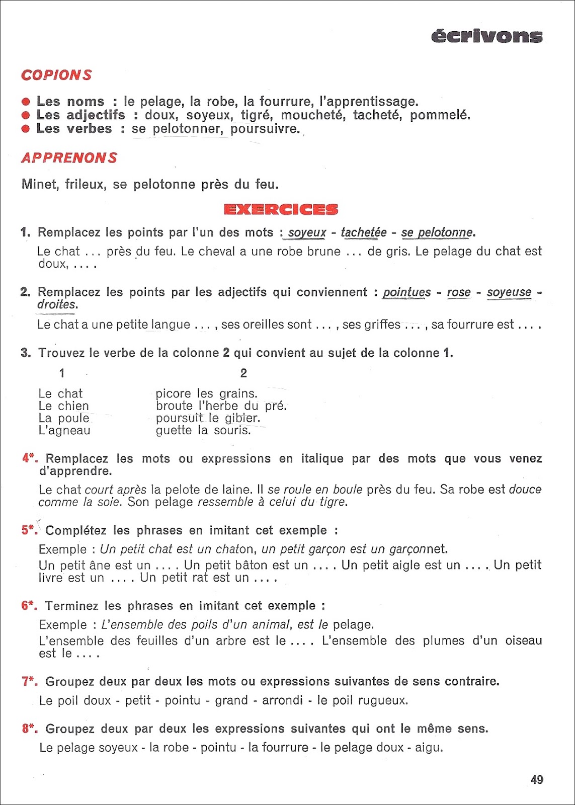 Onzième chapitre de Jean Garagnon, Vocabulaire - Elocution - Construction de phrases CE.