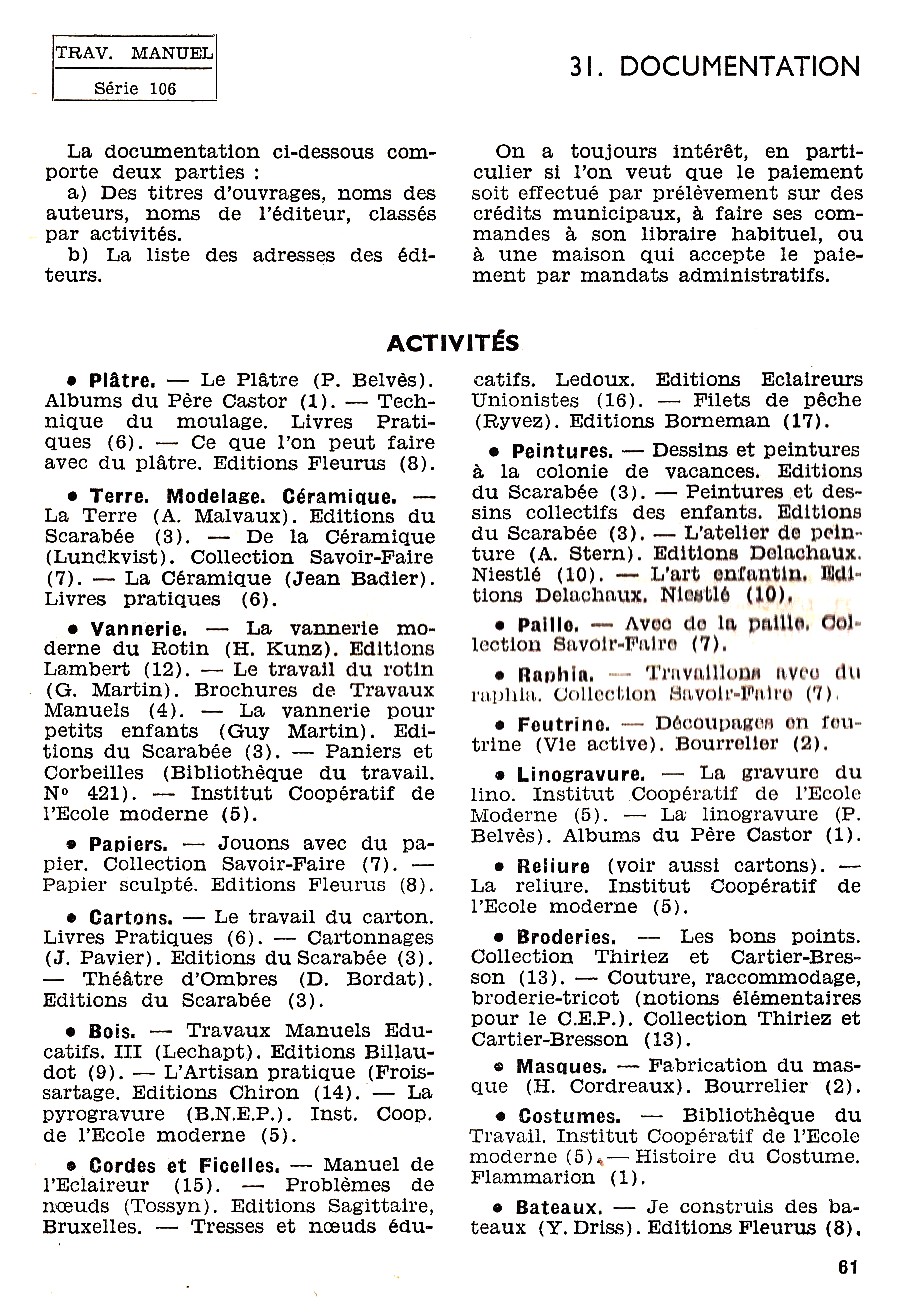 Travail manuel - niveaux tous cours (Préparations 32, n°106, 1964)