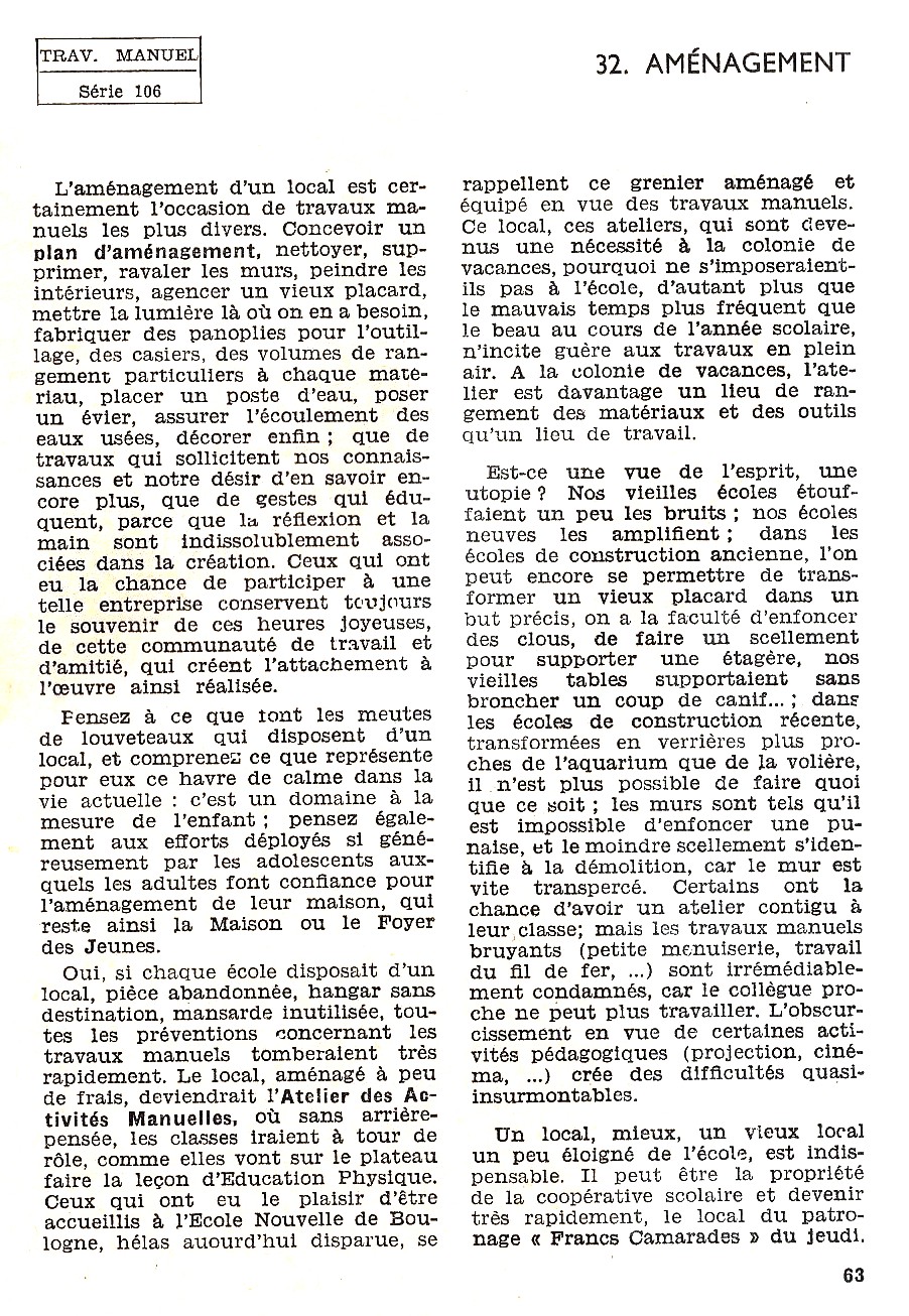 Travail manuel - niveaux tous cours (Préparations 32, n°106, 1964)