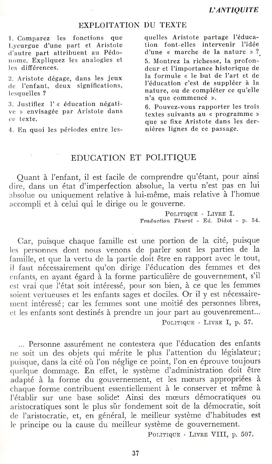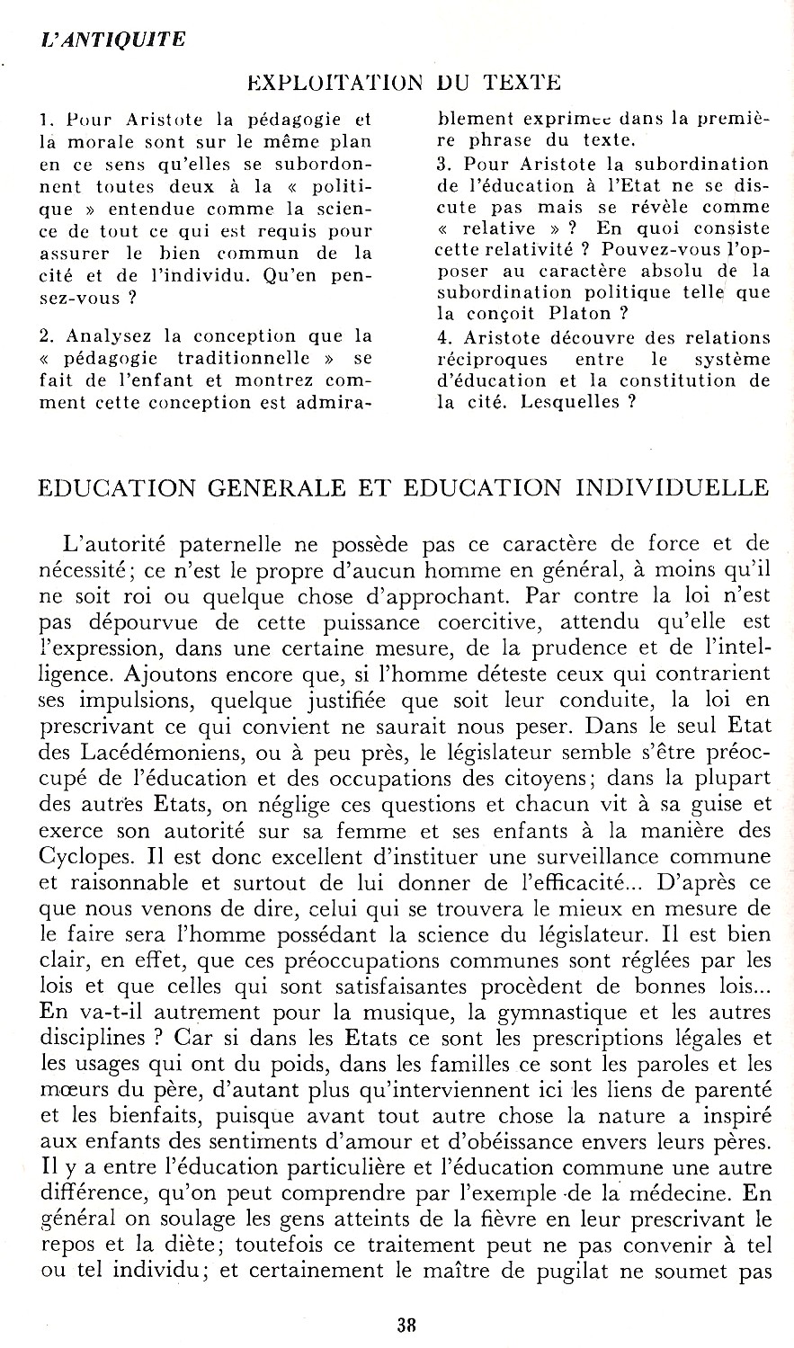 Aristote : Principes généraux de l'éducation - Éducation et politique - Éducation générale et éducation individuelle - L'éducation libérale