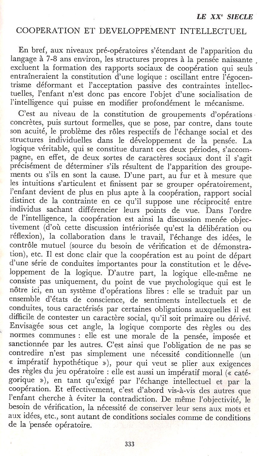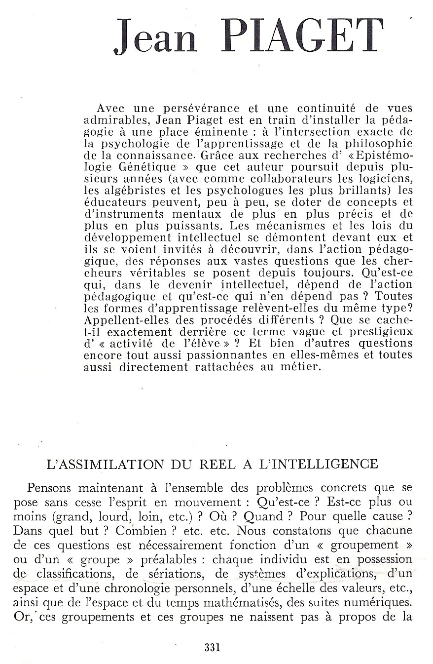 Jean Piaget : L'assimilation du réel à l'intelligence -Coopération