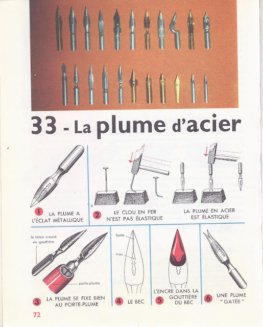 diverses, pointe en fer, pierre et marteau, porte-plume, plumes rouillées.