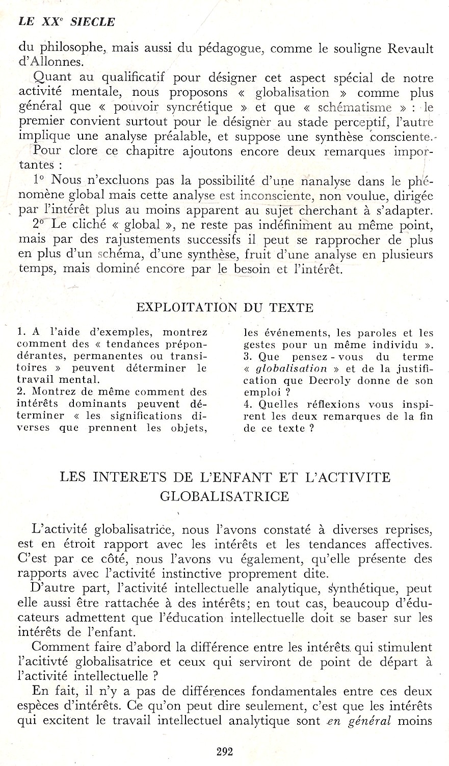 Les intérêts de l'enfant et l'activité globalisatrice