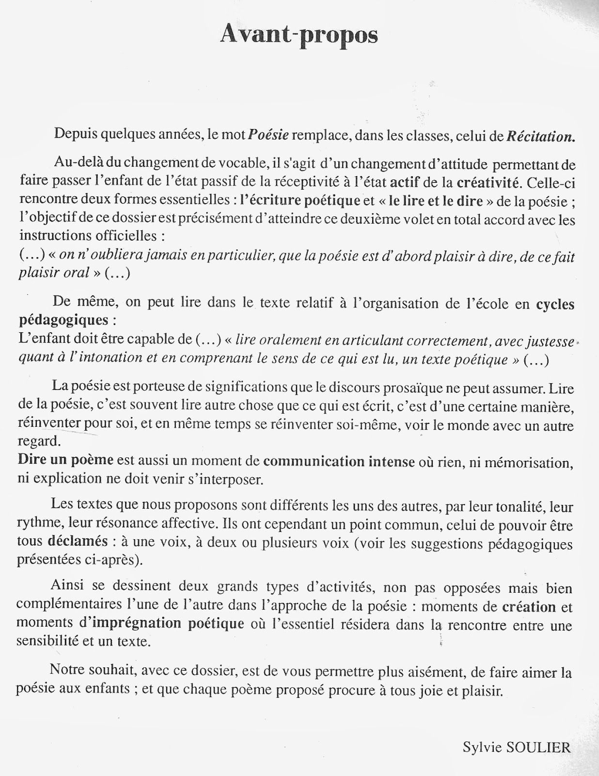 Sylvie Soulier, Dire la poésie Cycle 3, Multiprint, Mdi, 1992.
