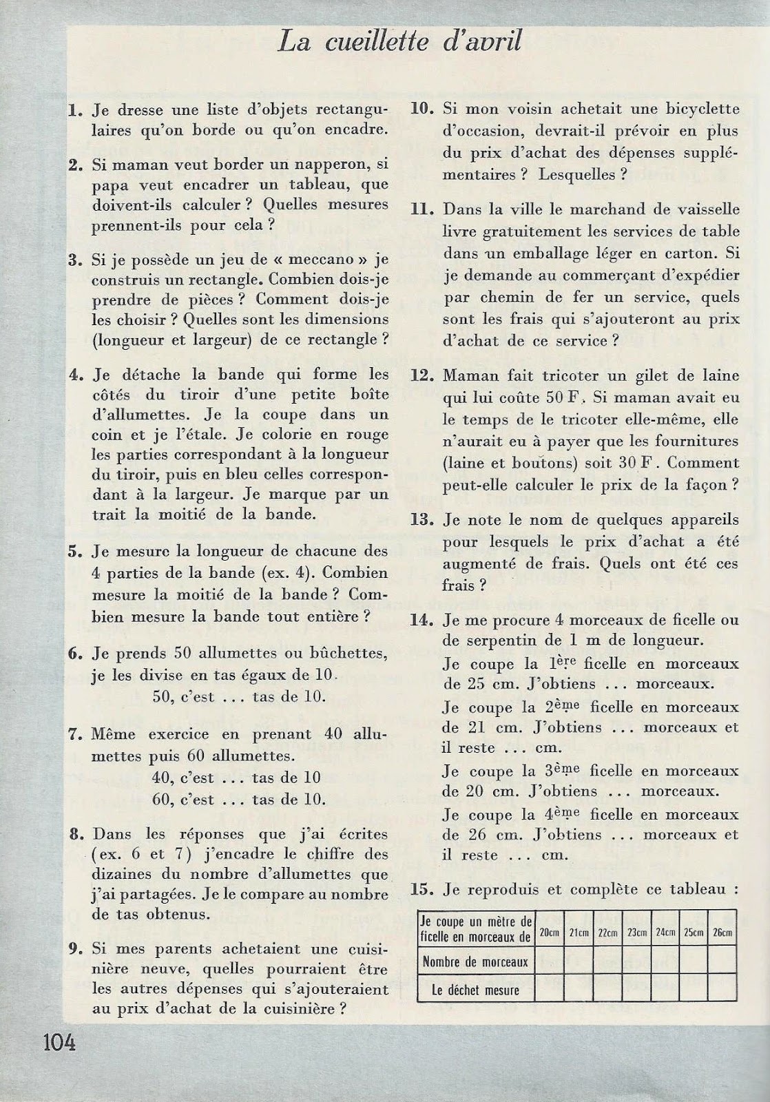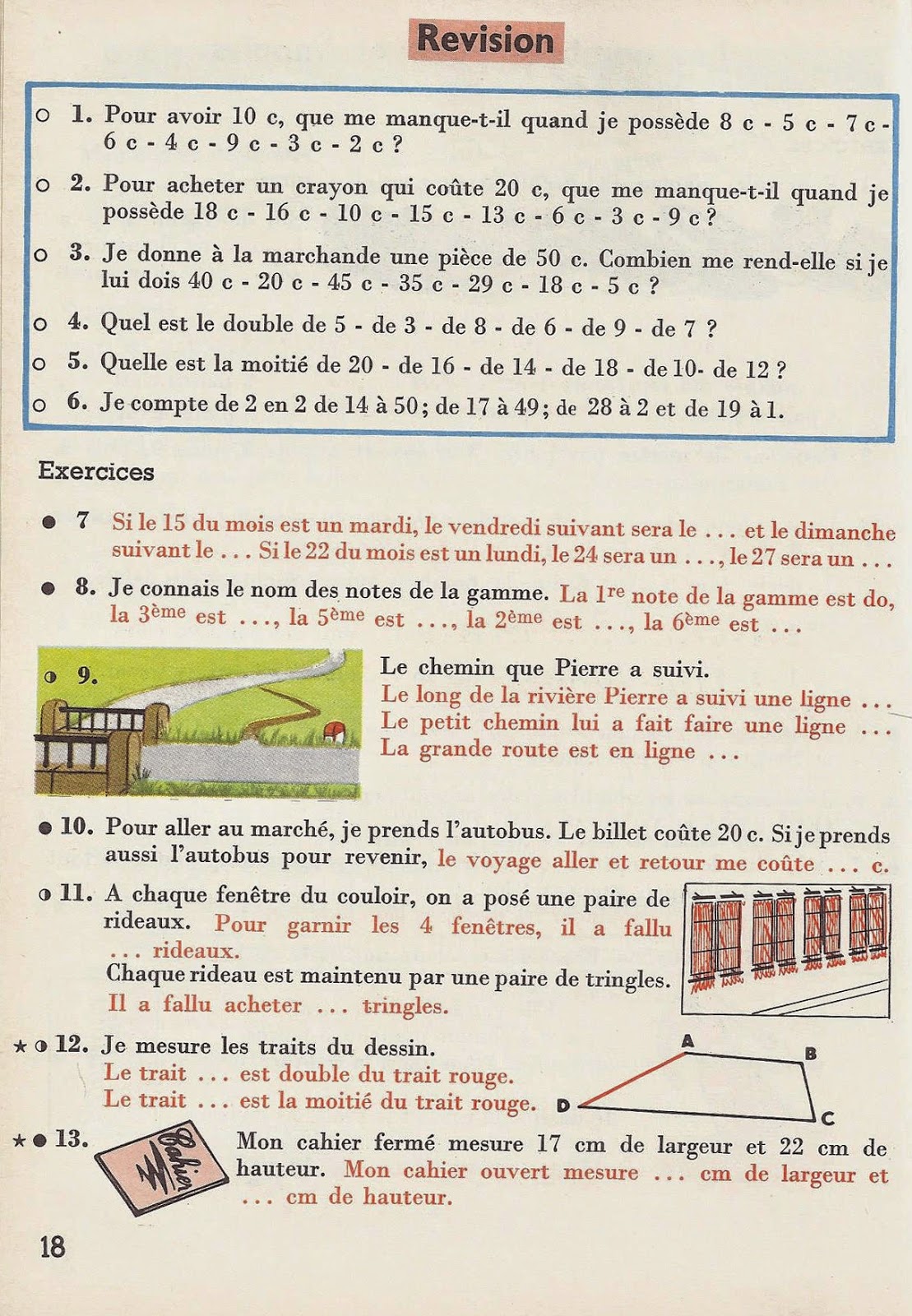 2 Le décimètre et le centimètre : 4-5 – Les pièces de 20 c, 50 c et 1 F (100 c) : 6