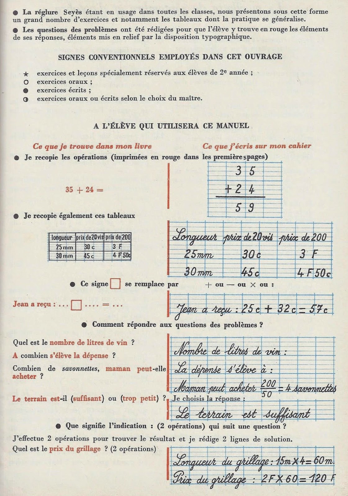 · Les leçons s'appuient sur un fait concret que matérialise une illustration à la fois précise et évocatrice. Un schéma, une gravure trop dépouillée de ses détails sont déjà des abstractions non accessibles à l'élève du Cours élémentaire. En revanche, l'initiation mathématique exige des figures justes. Nous avons tenu à donner une reproduction exacte des grandeurs étudiées. Dans les cas où il était impossible de le faire, l'illustration en conserve toutes les proportions.