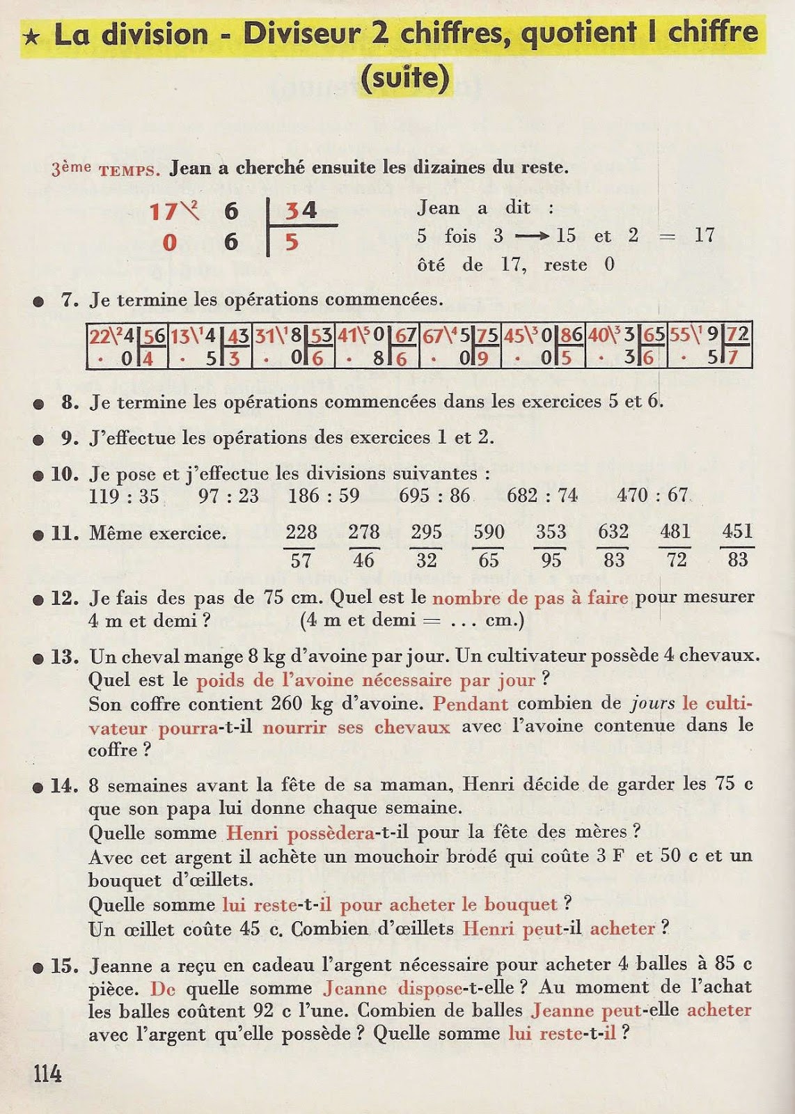 3 La division. Diviseur 2 chiffres. Quotient 1 chiffre (suite) : 114