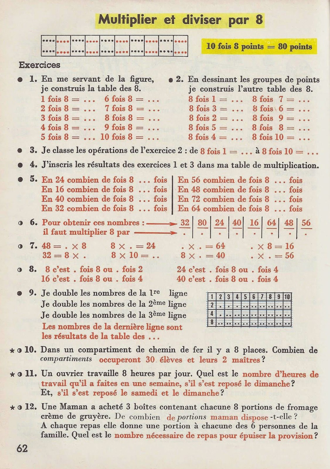 Faire acquérir les mécanismes de base est indispensable parce que l'enfant ne goûtera le calcul qu'étant maître de ces mécanismes. Le C. E. est, par excellence, l'âge de cette acquisition. Notre livre offre une progression systématique dans l'étude des opérations dont toutes les difficultés ont été disséquées (14 leçons nous ont paru nécessaires pour étudier la division). Chaque difficulté circonscrite a encore fait l'objet de gammes graduées qui conduisent à l'acquisition définitive du mécanisme.