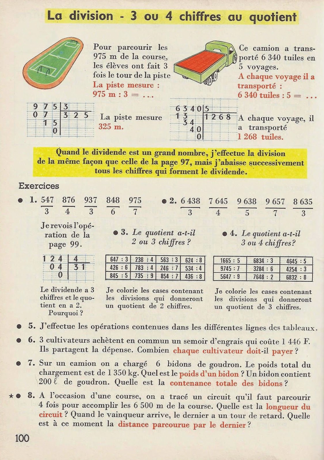 3 La division. 3 ou 4 chiffres au quotient : 100 - Le millimètre : 101 -