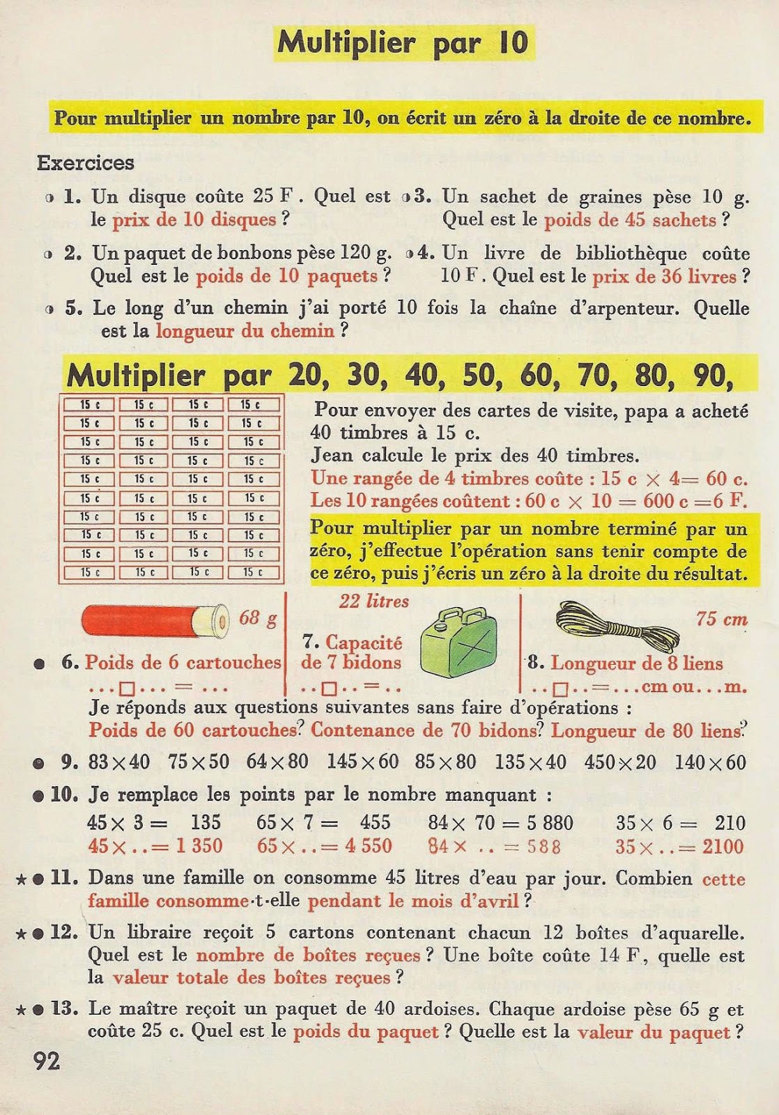 1 X par 10. X par 20, 30, 40, 50, 60, 70, 80, 90 : 92 - Le multiplicateur a deux chiffres : 93 - L'année : les mois, les jours : 94-95