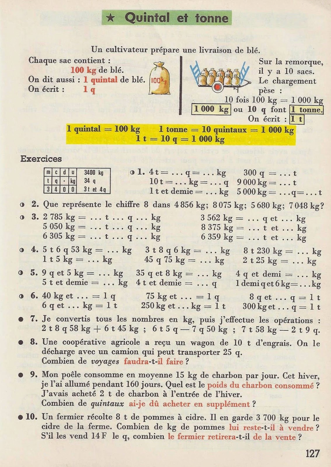 3 Prix d'un objet. Prix d'une collection de mêmes objets : 126 - Le quintal et la tonne : 127 - Vitesse et distance : 128-129