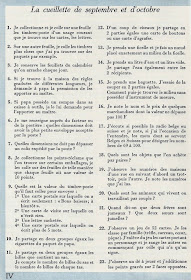 · Le questionnaire « Cueillette du mois», placé en tête de chaque tranche mensuelle, laisse à l'élève un délai suffisant pour trouver les objets ou les renseignements qui lui sont demandés. Bien que remplir ce questionnaire ne soit pas indispensable pour l'utilisation du livre, nous pensons qu'associer les enfants à la recherche des matériaux est une excellente manière de préparer la leçon, et c'est en même temps remplacer les « traditionnels devoirs » par des travaux pratiques beaucoup plus attrayants.