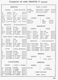 Tables de conjugaison extraites du manuel : Grèzes et Dugers, Langue française Cours moyen, Éditions de l'École, 1955, réimp. 1985.