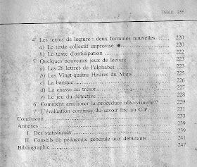 Un gros volume qui se veut - présenter le plus objectivement et le plus impartialement possible une information théorique et pratique très détaillée relative aux méthodes, aux procédés... qui permettent à l'enfant de 6-7 ans d'apprendre à bien lire - nous annonce la 4• de couverture. Et à l'intérieur un texte dense, accompagné de nombreuses citations et références nous met en confiance. L'ouvrage commence naturellement par le rappel des travaux d'Emile Javal, dont Bernard Toresse nous rappelle que dans Physiologie de la lecture et de l'écriture, de la page 129 à 132, on apprend que :