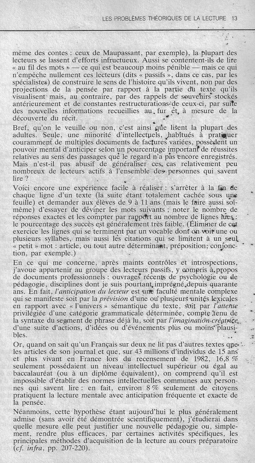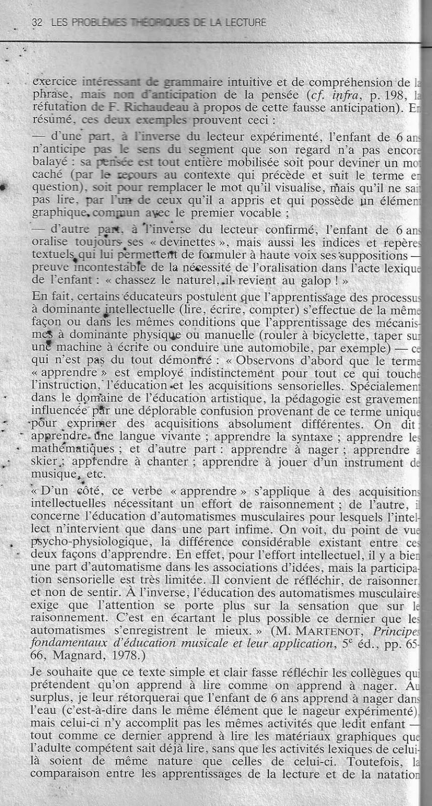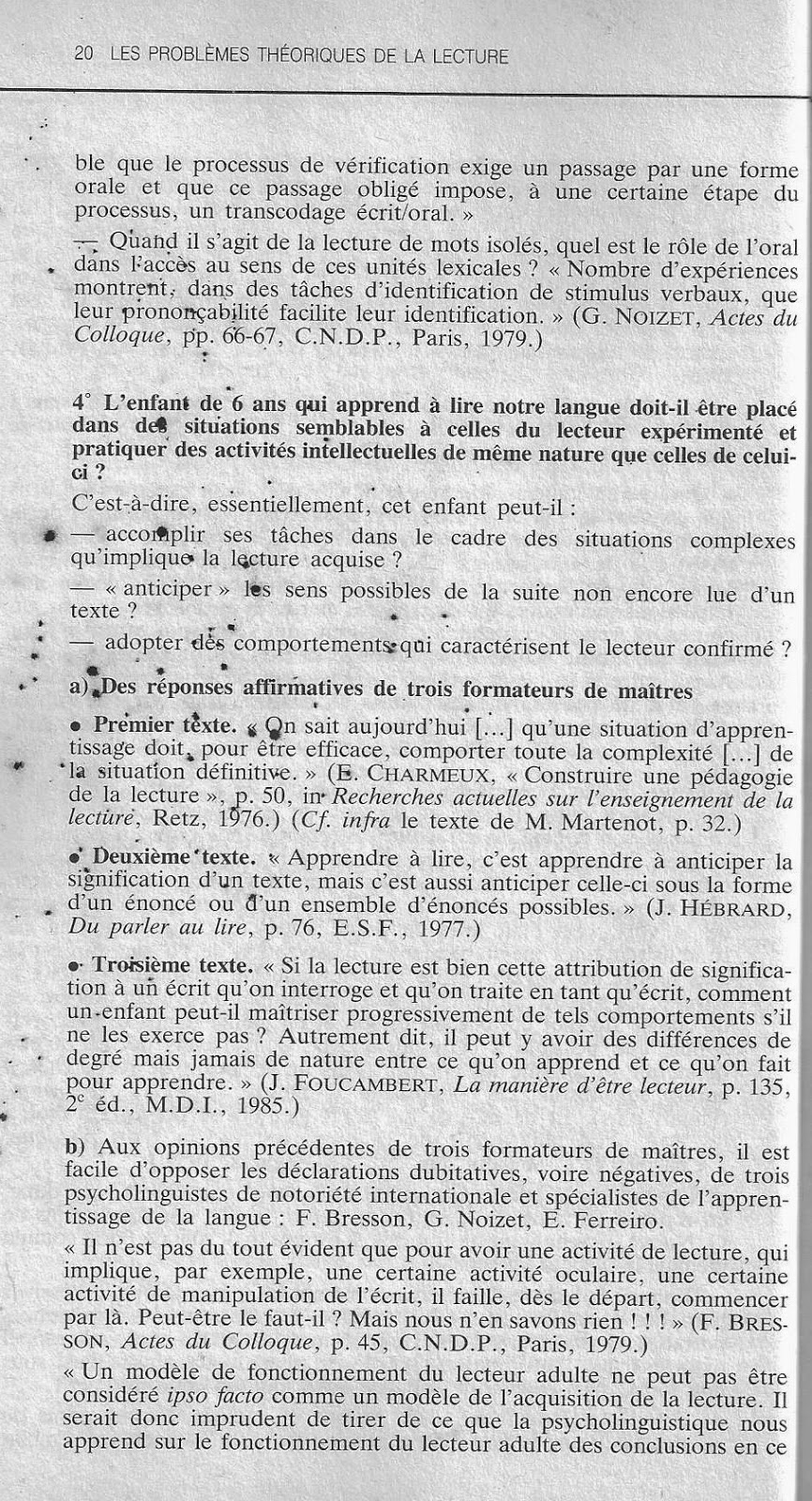4° L'enfant de 6 ans qui apprend à lire notre langue doit-il être placé dans des situations semblables à celles du lecteur expérimenté et pratiquer des activités intellectuelles de même nature que celles de celui-ci ?