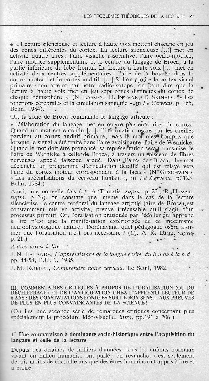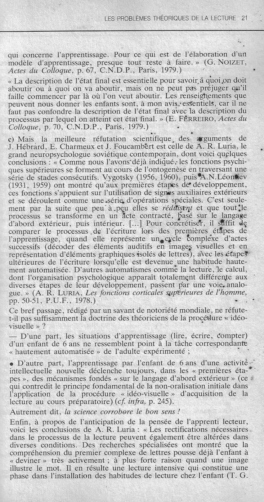c) La réfutation du neuropsychologue A. R. Luria