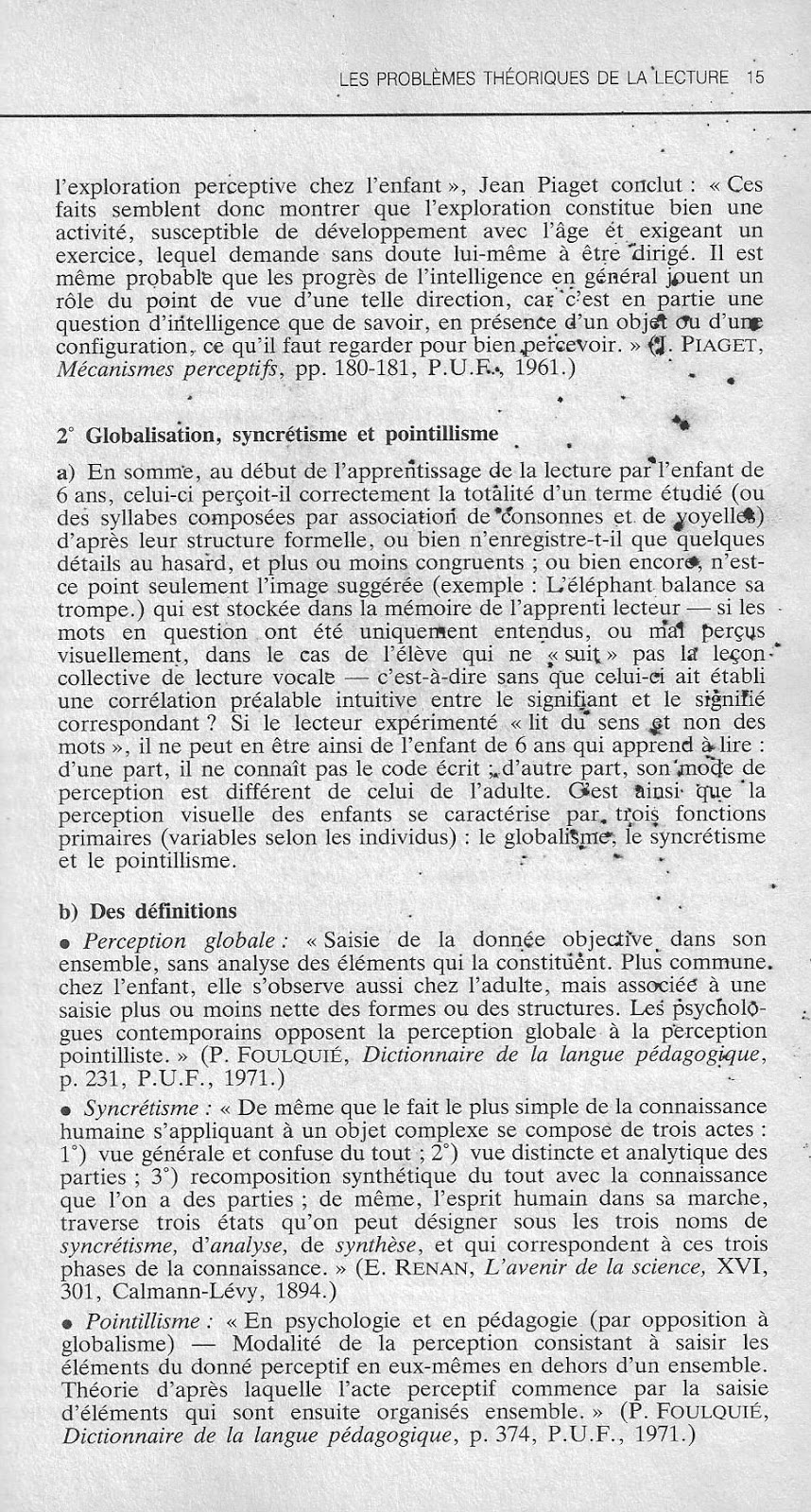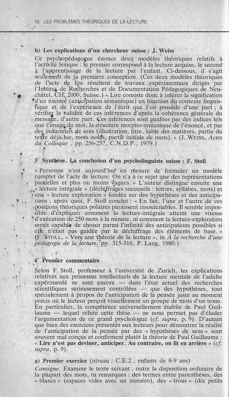 3° Synthèse. Le point de vue d'un psycholinguiste suisse : F. Stoll