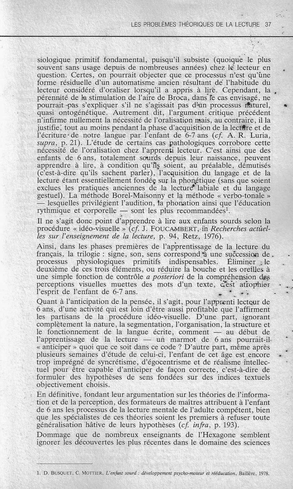 5° L'oralisation est-elle nécessaire à l'enfant de 6 ans qui apprend à lire