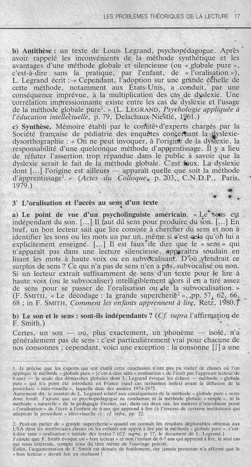 a) L'opinion d'un psycholinguiste américain