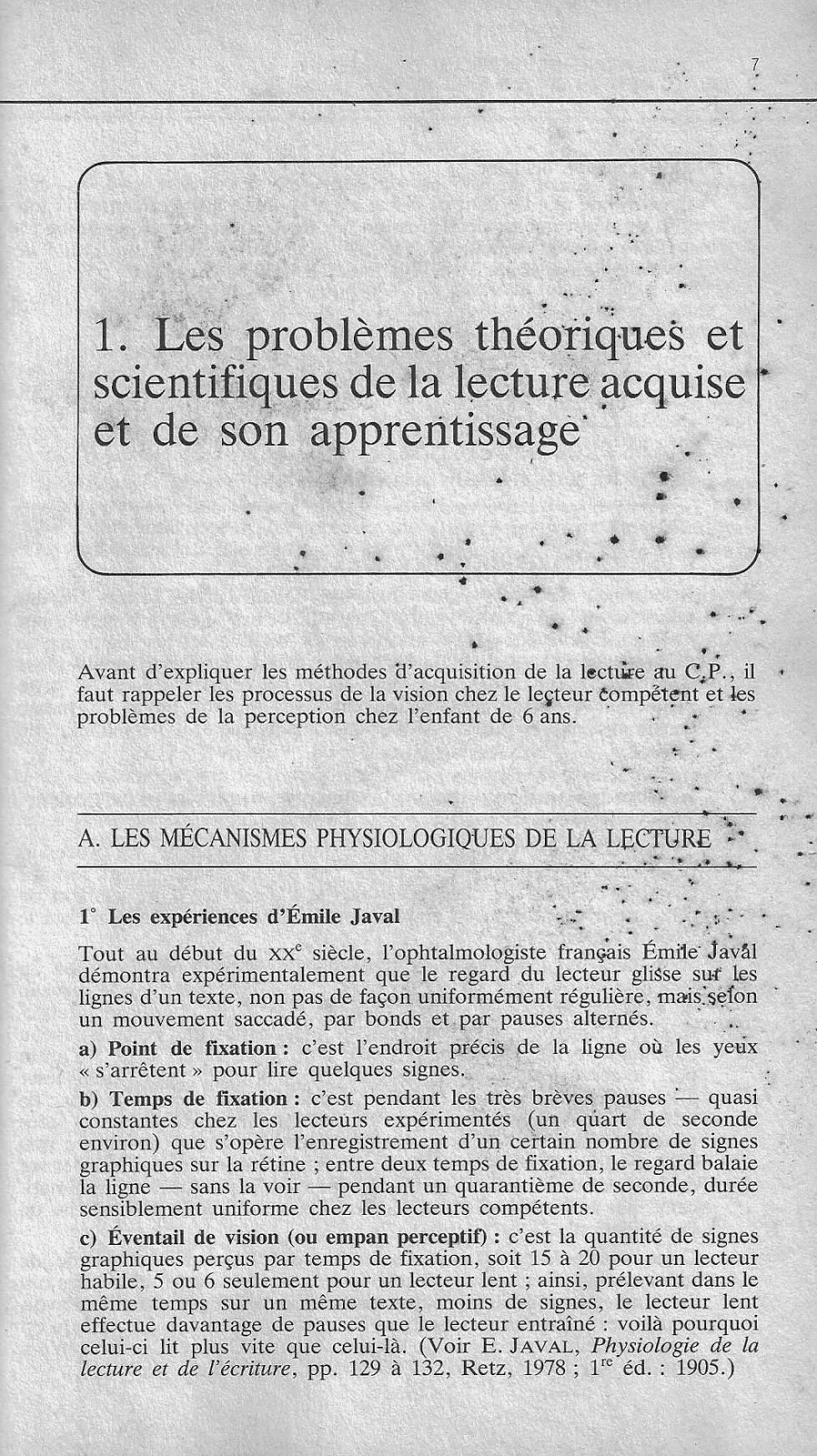 1° Les expériences d'Émile Javal
