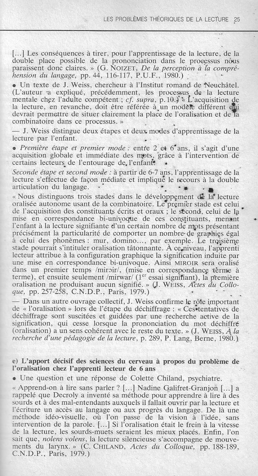 d) Des hypothèses (G. Noizet, J. Weiss)