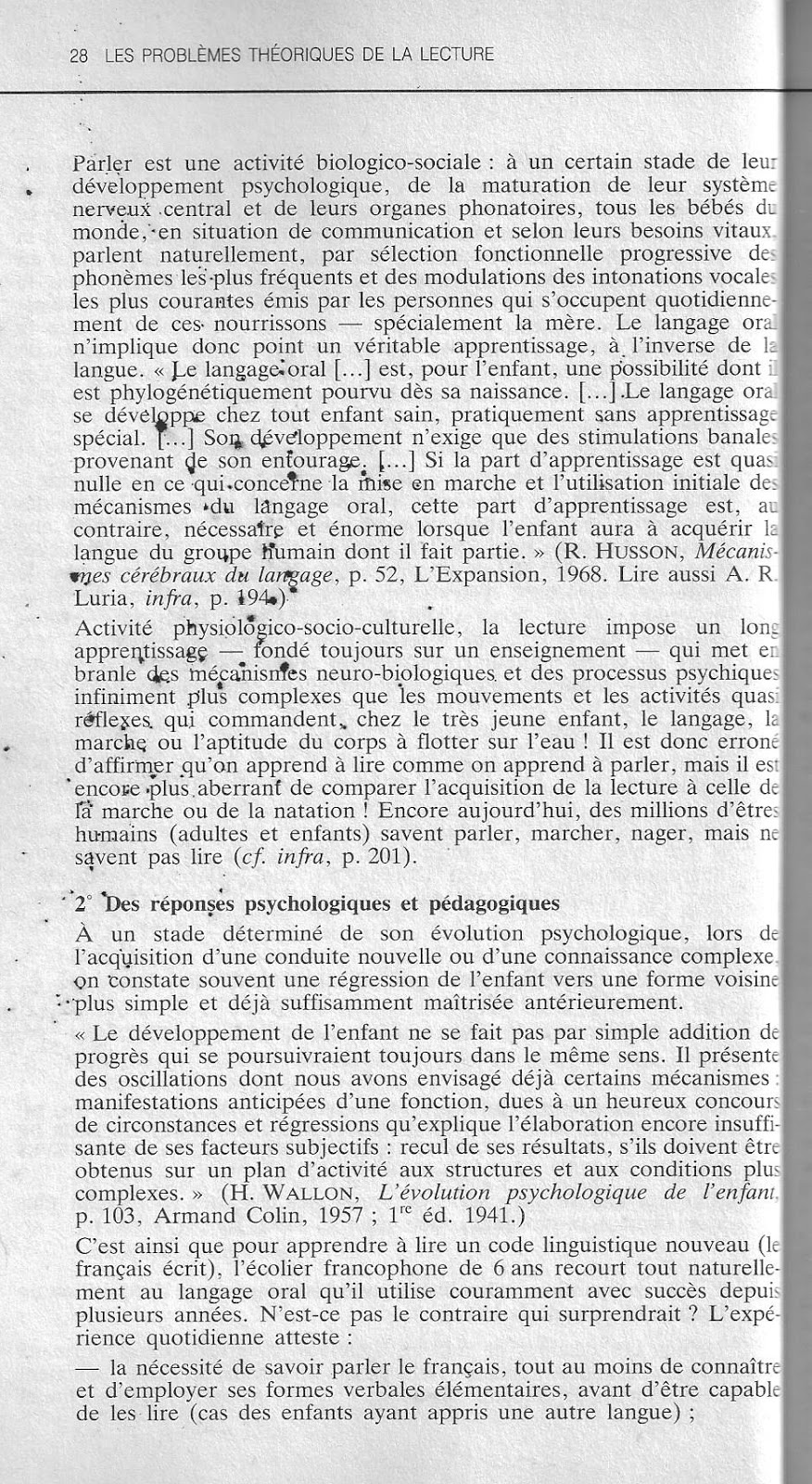 1° Une comparaison à dominante socio-historique entre l'acquisition du langage et celle de la lecture