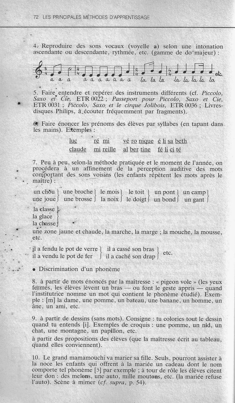 5° Liste des dessins et des mots évocateurs des principaux sons de la frise murale