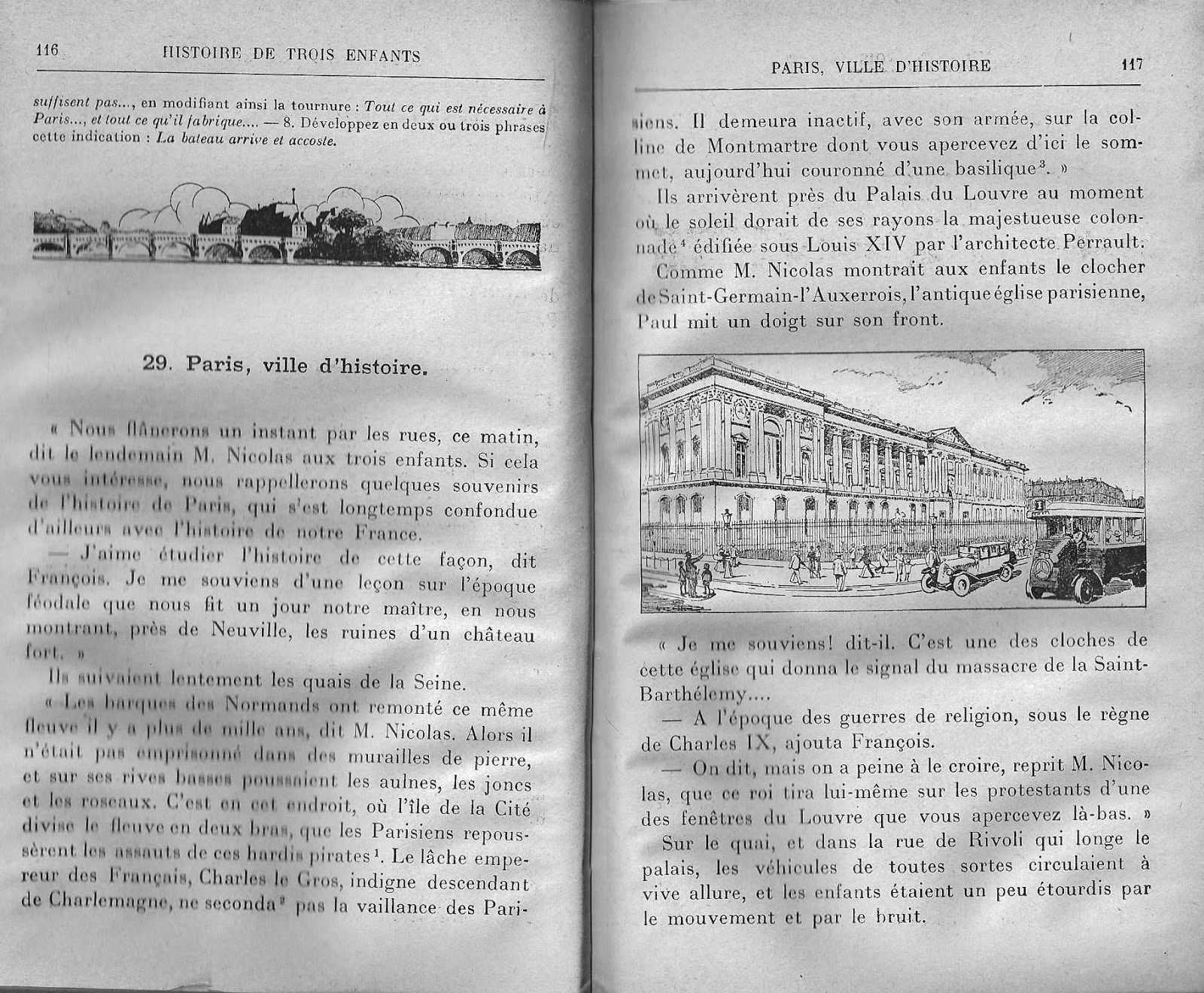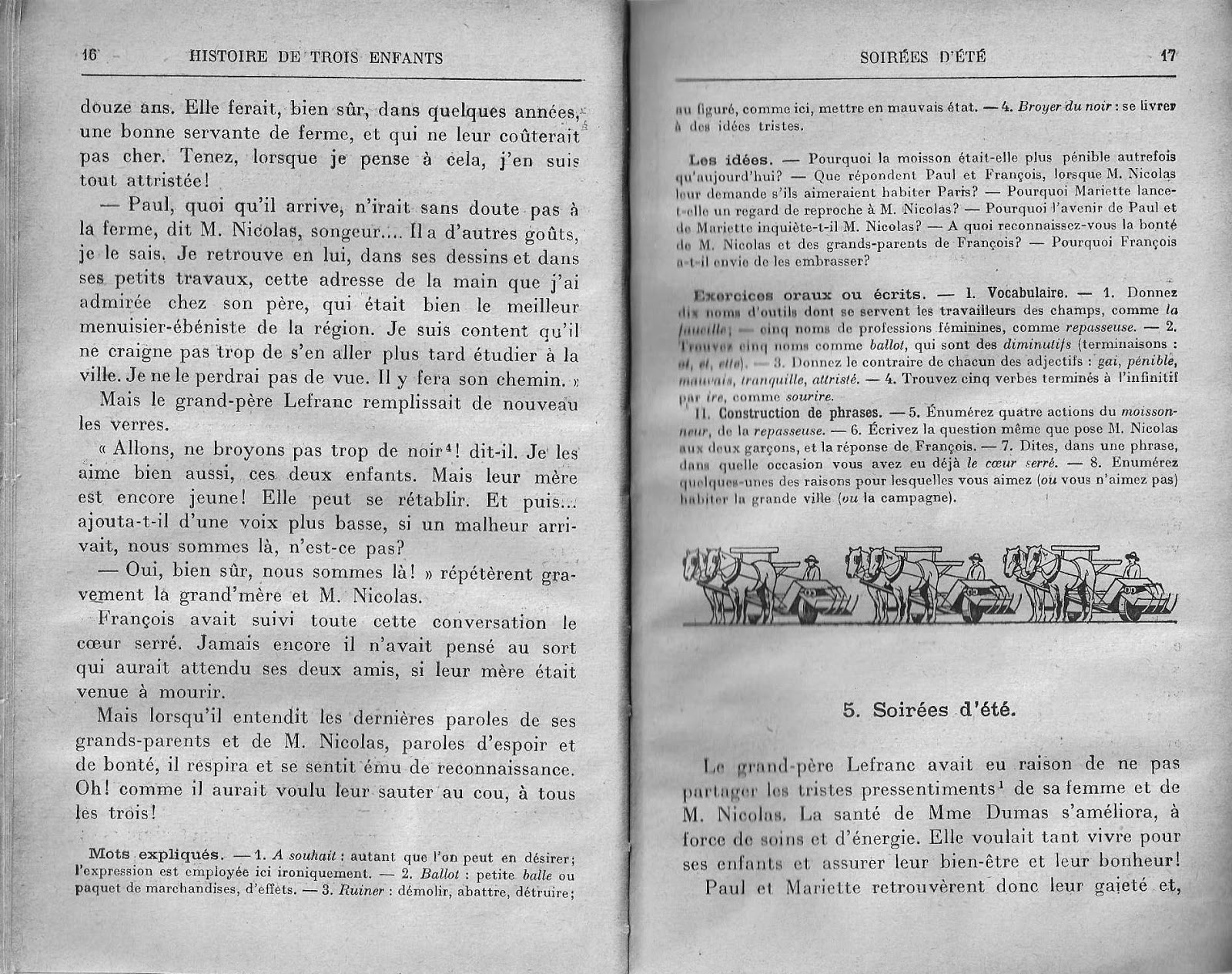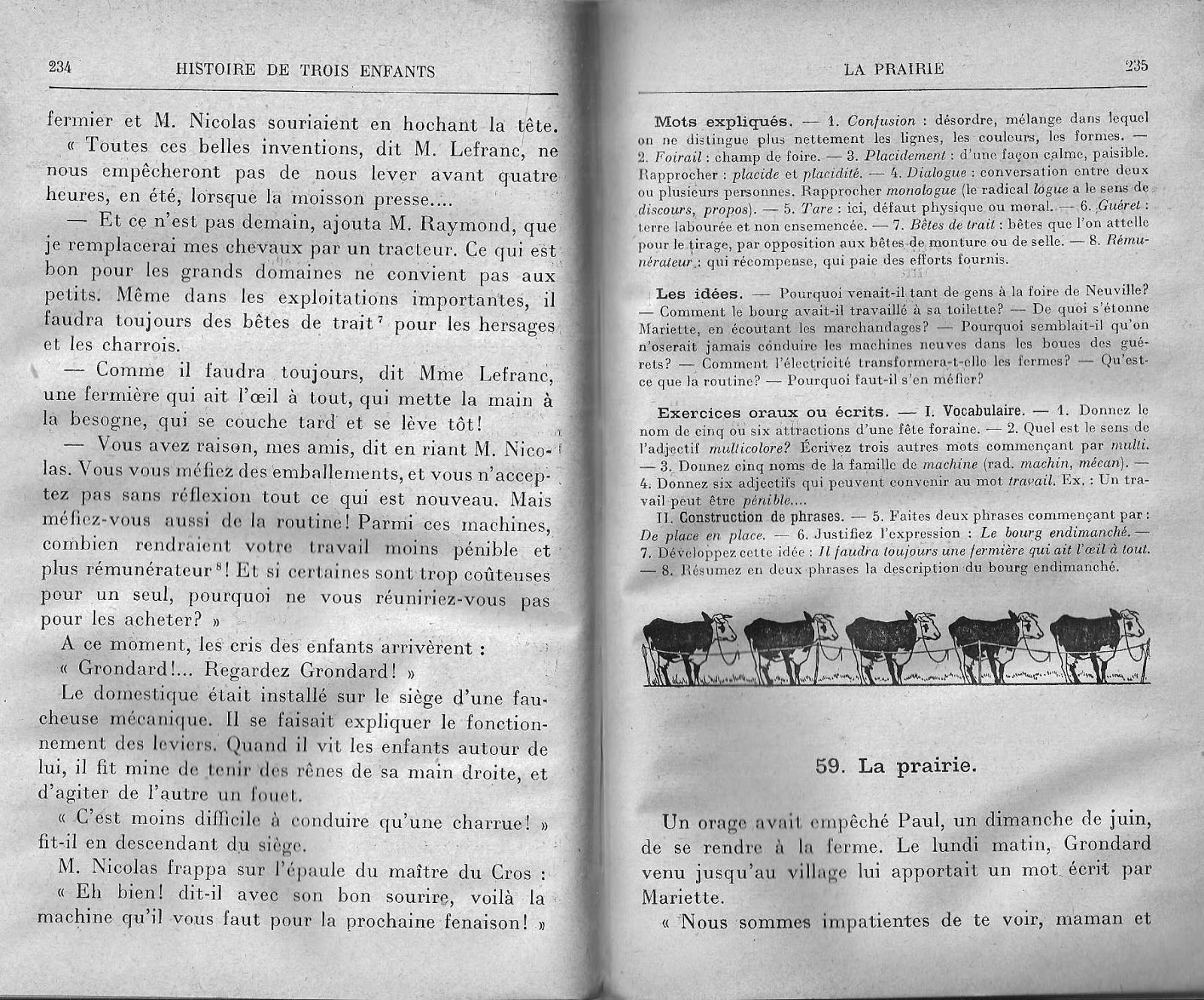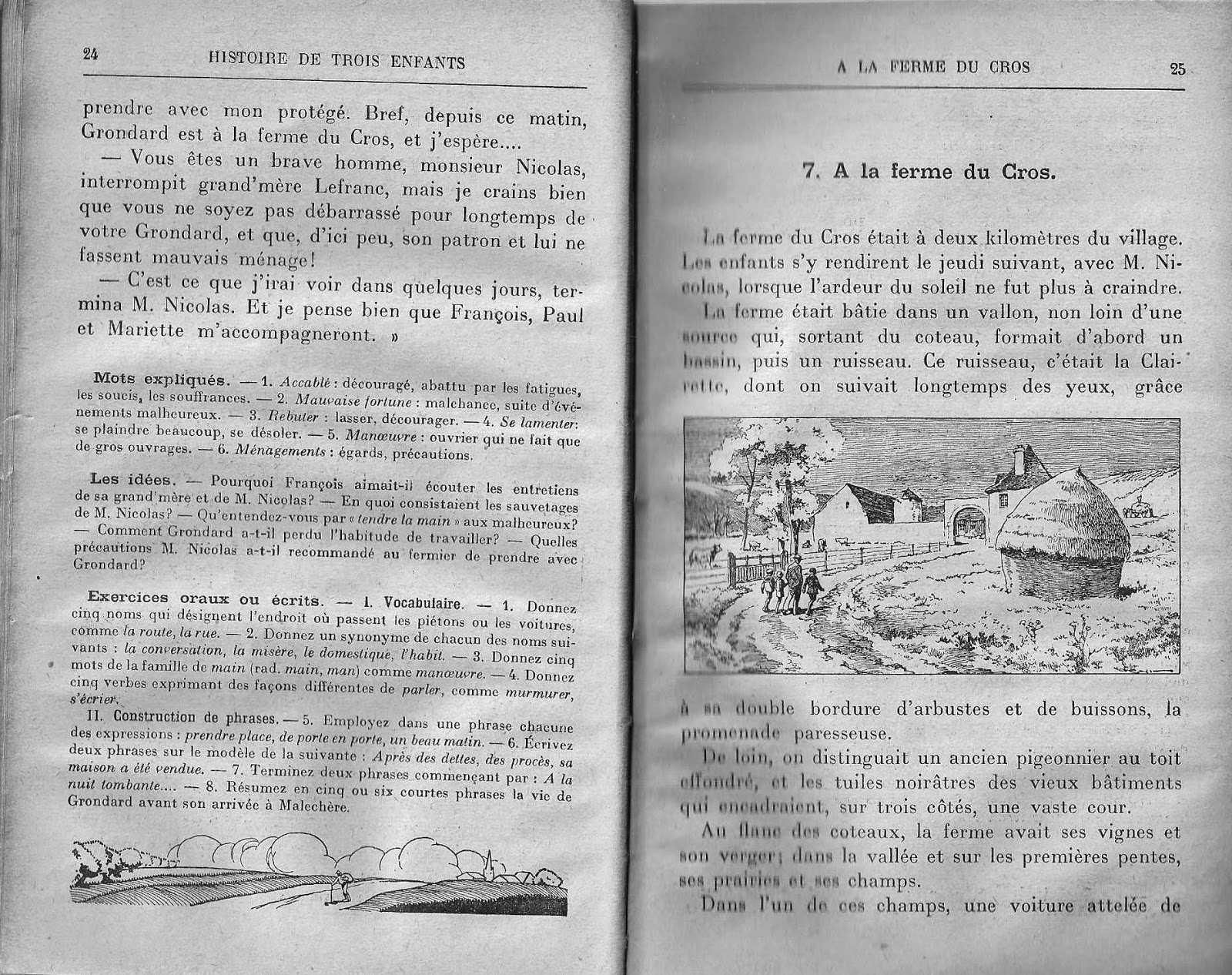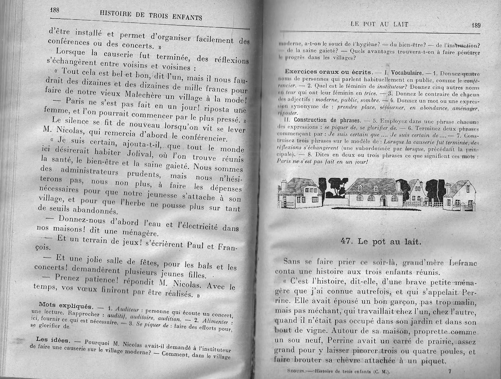 K. Seguin, Histoire de 3 enfants, livre de lecture courante Cours Moyen, 1927).