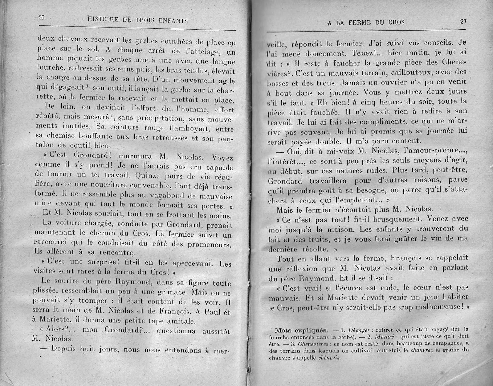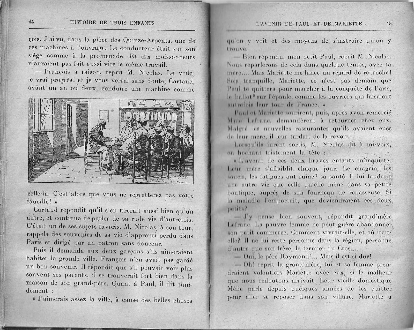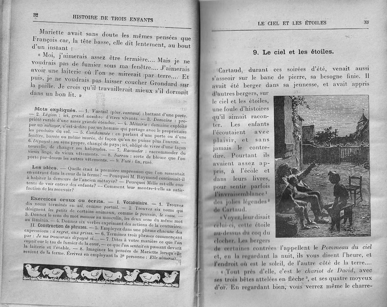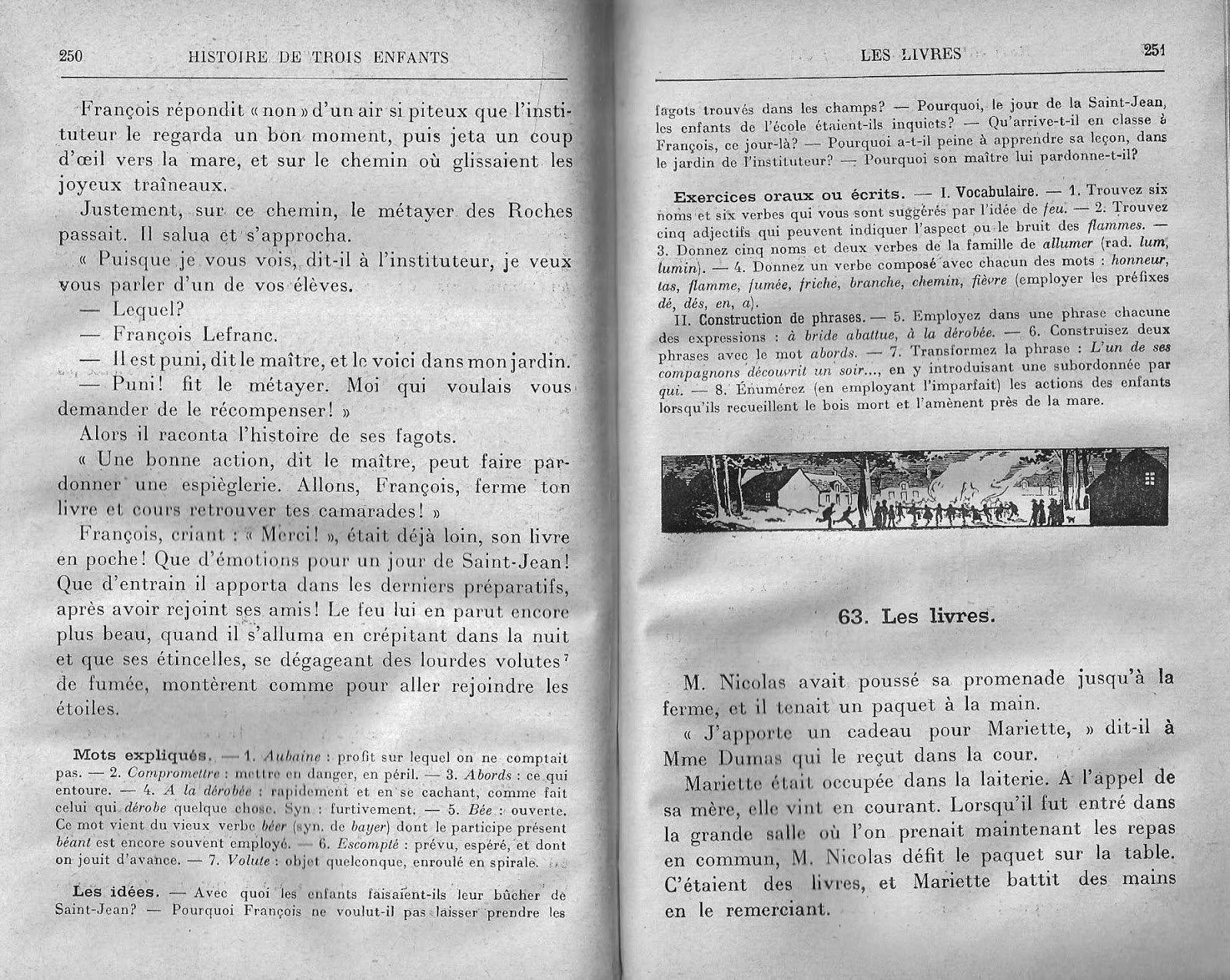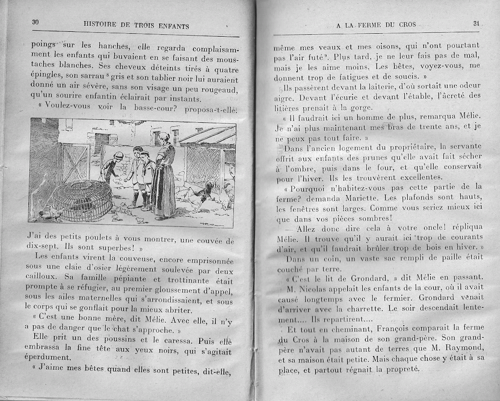 K. Seguin, Histoire de 3 enfants, livre de lecture courante Cours Moyen, 1927).