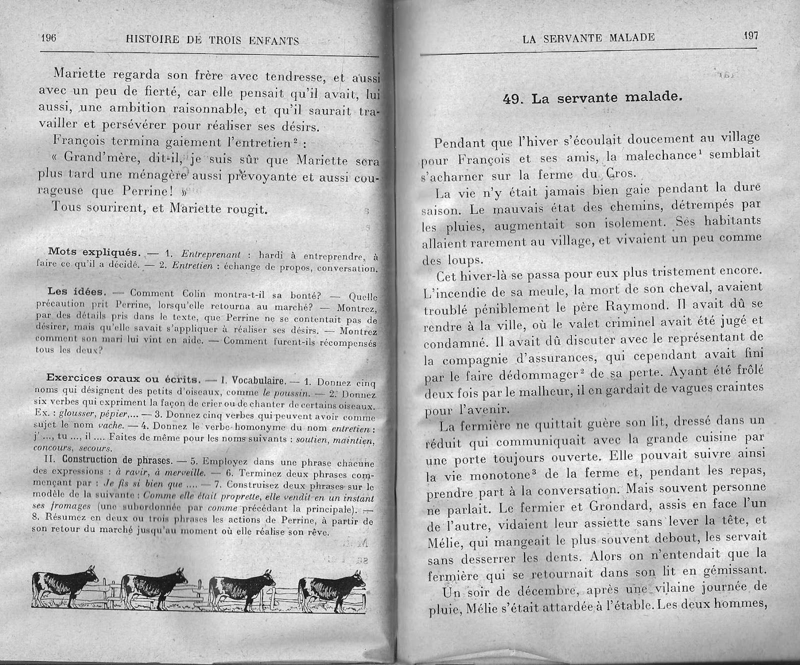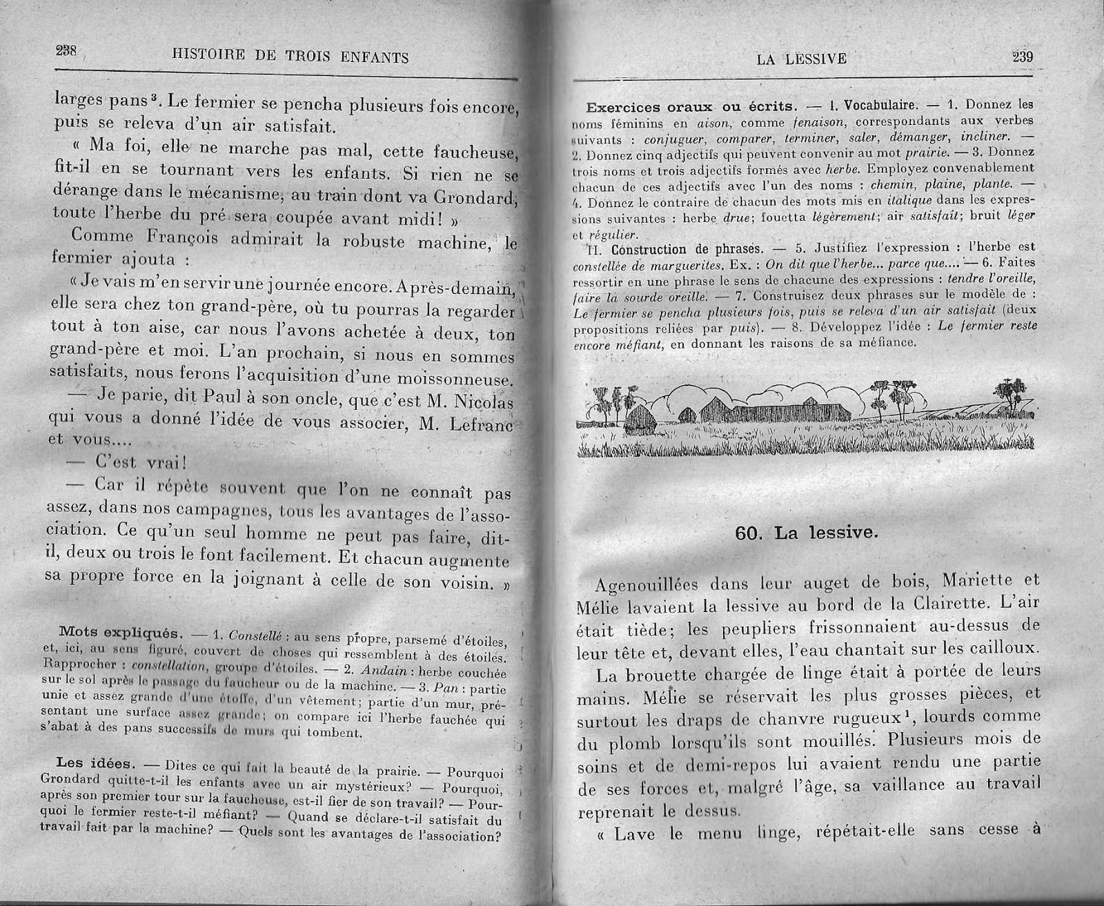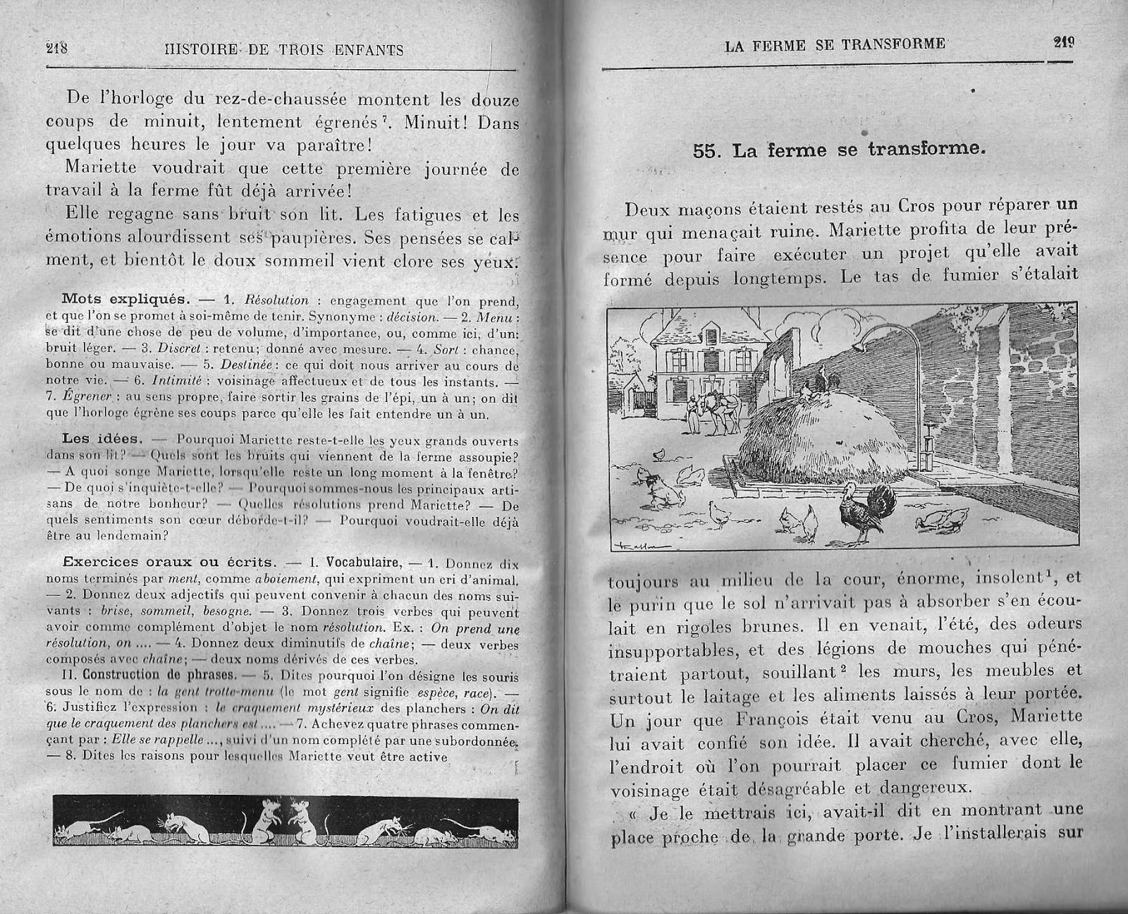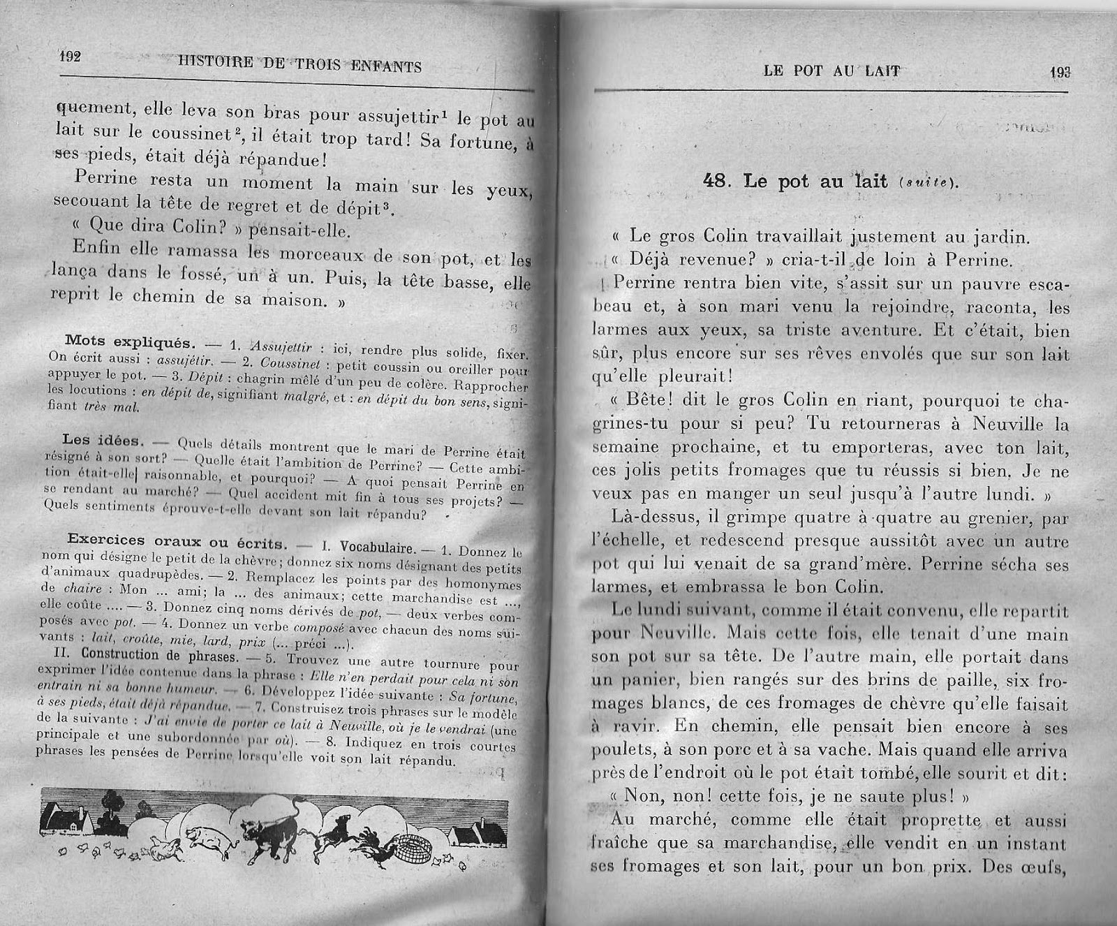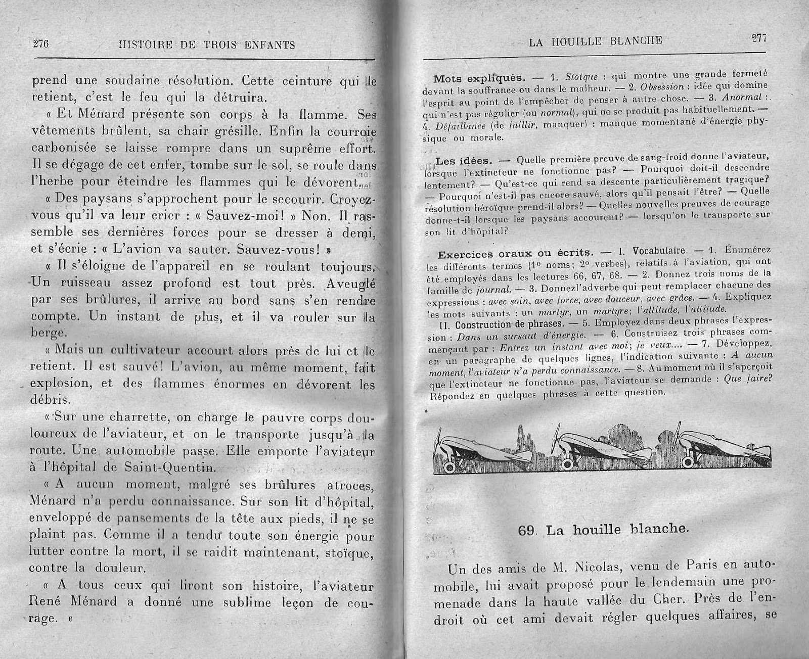 K. Seguin, Histoire de 3 enfants, livre de lecture courante Cours Moyen, 1927).