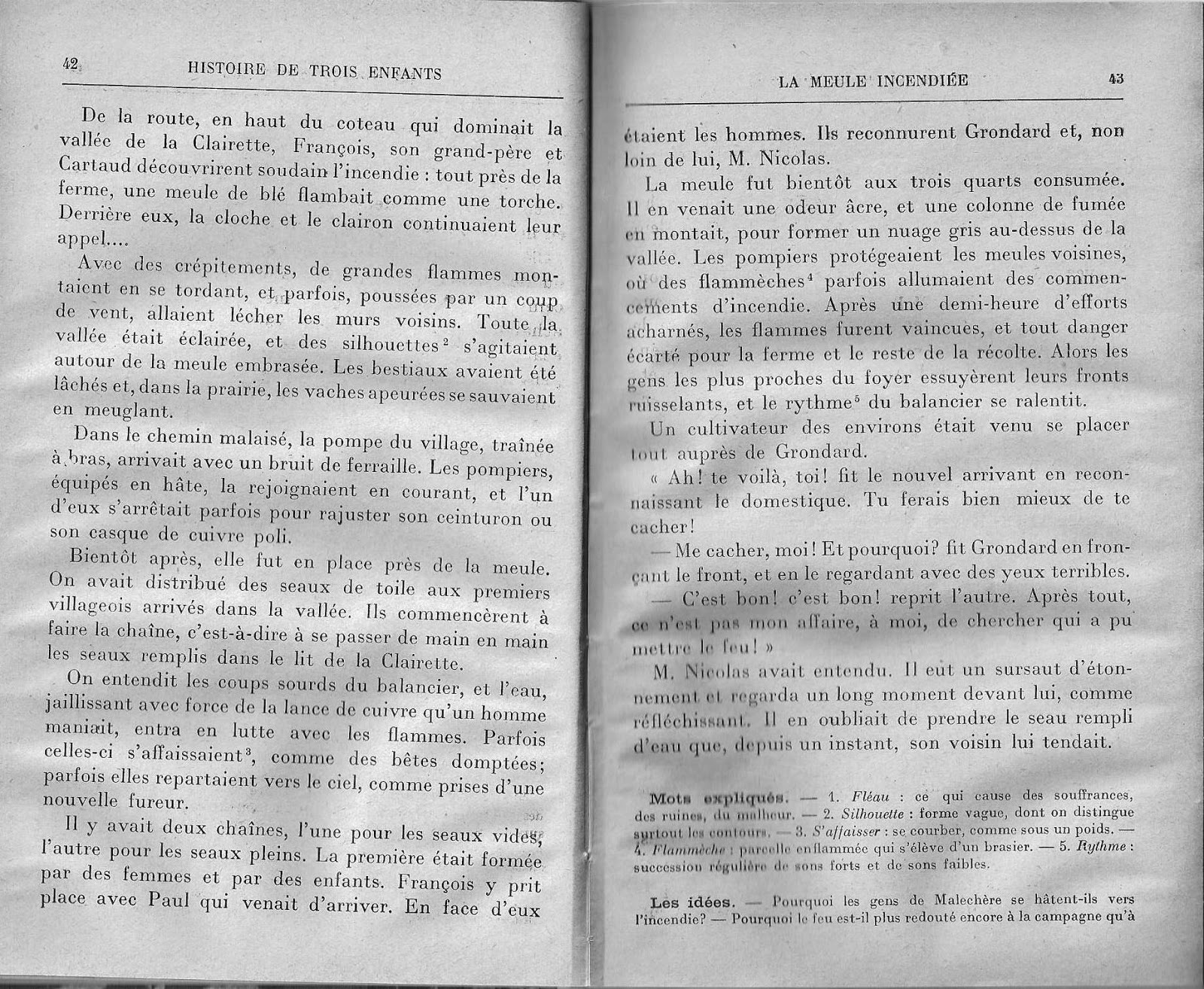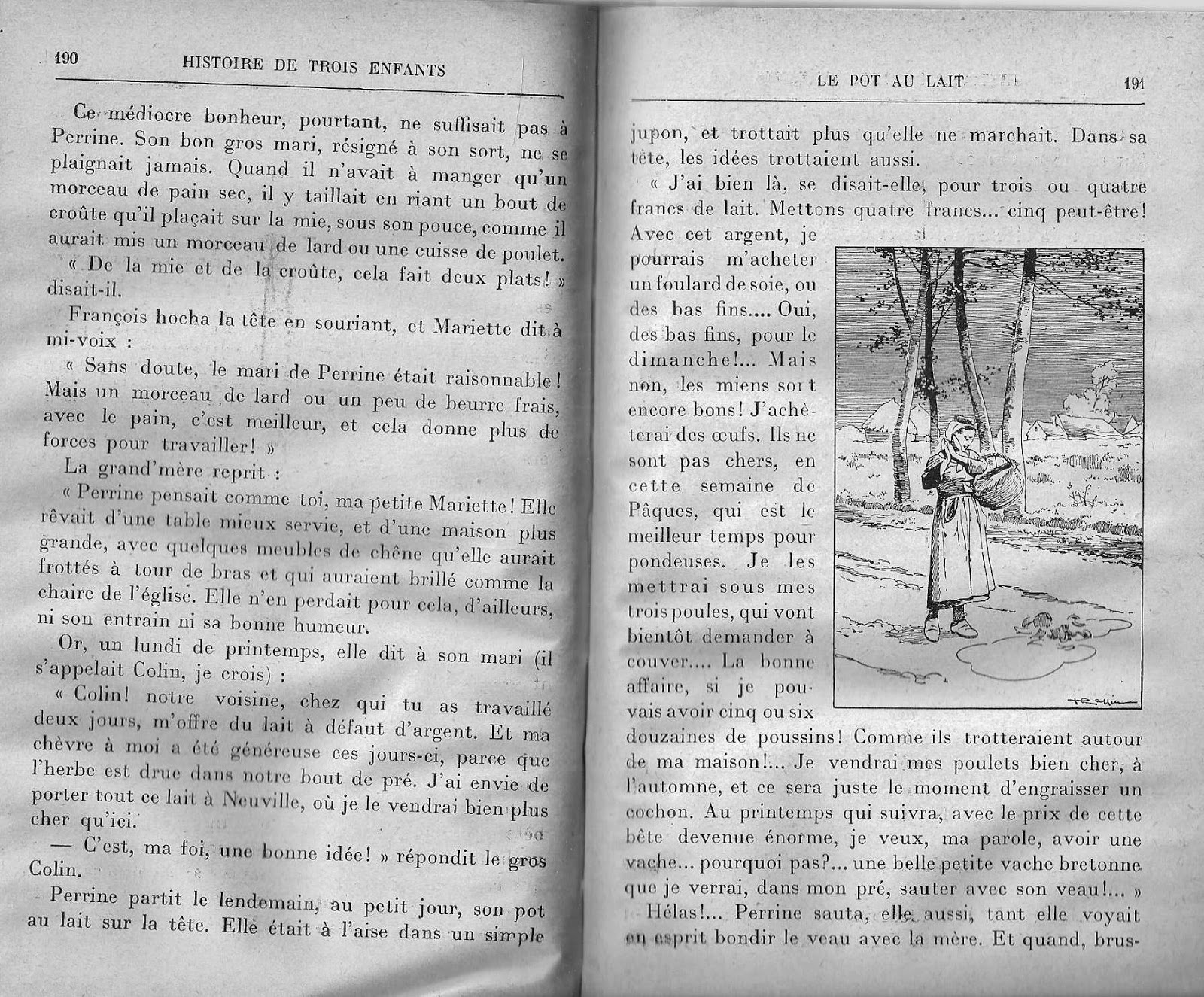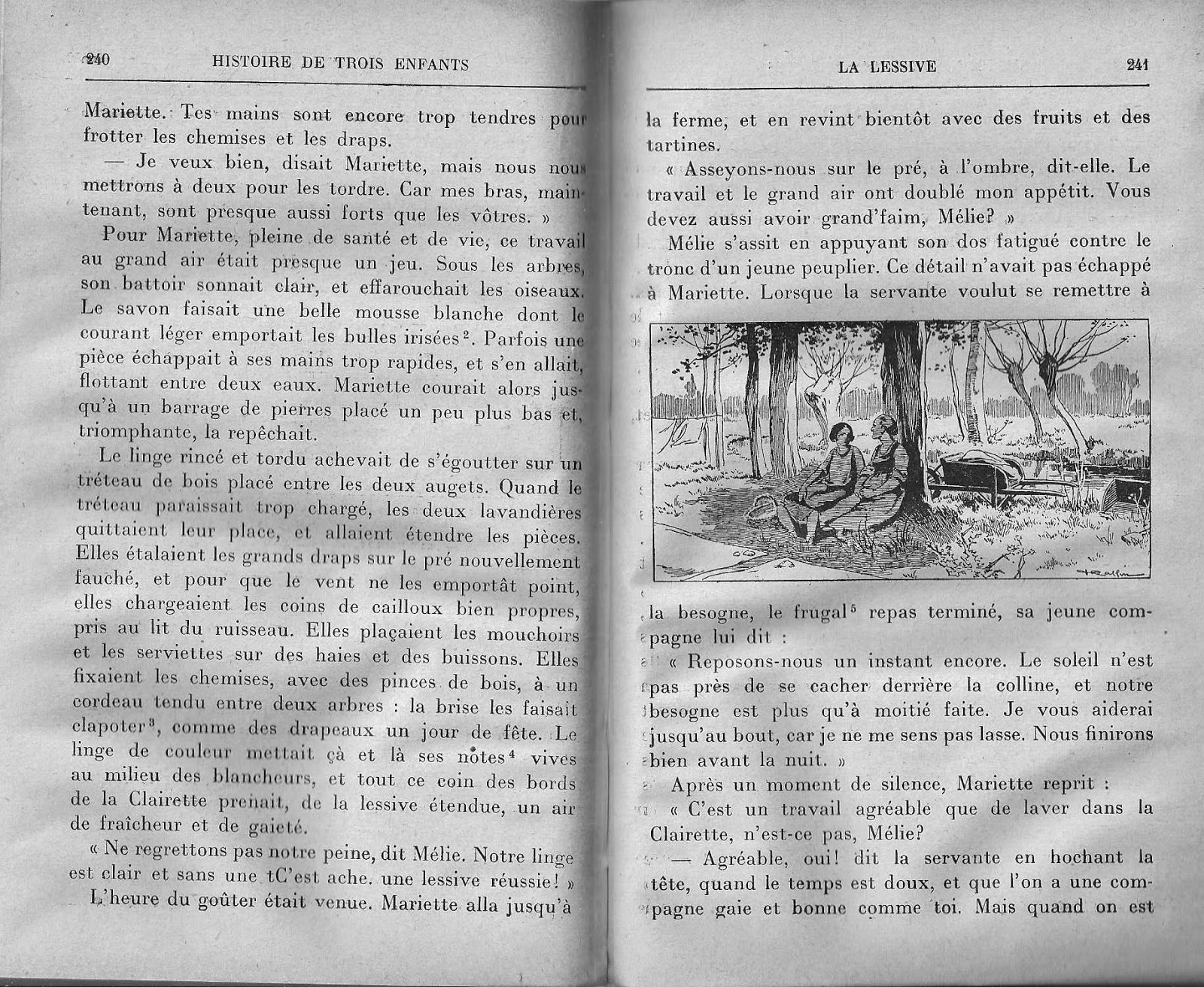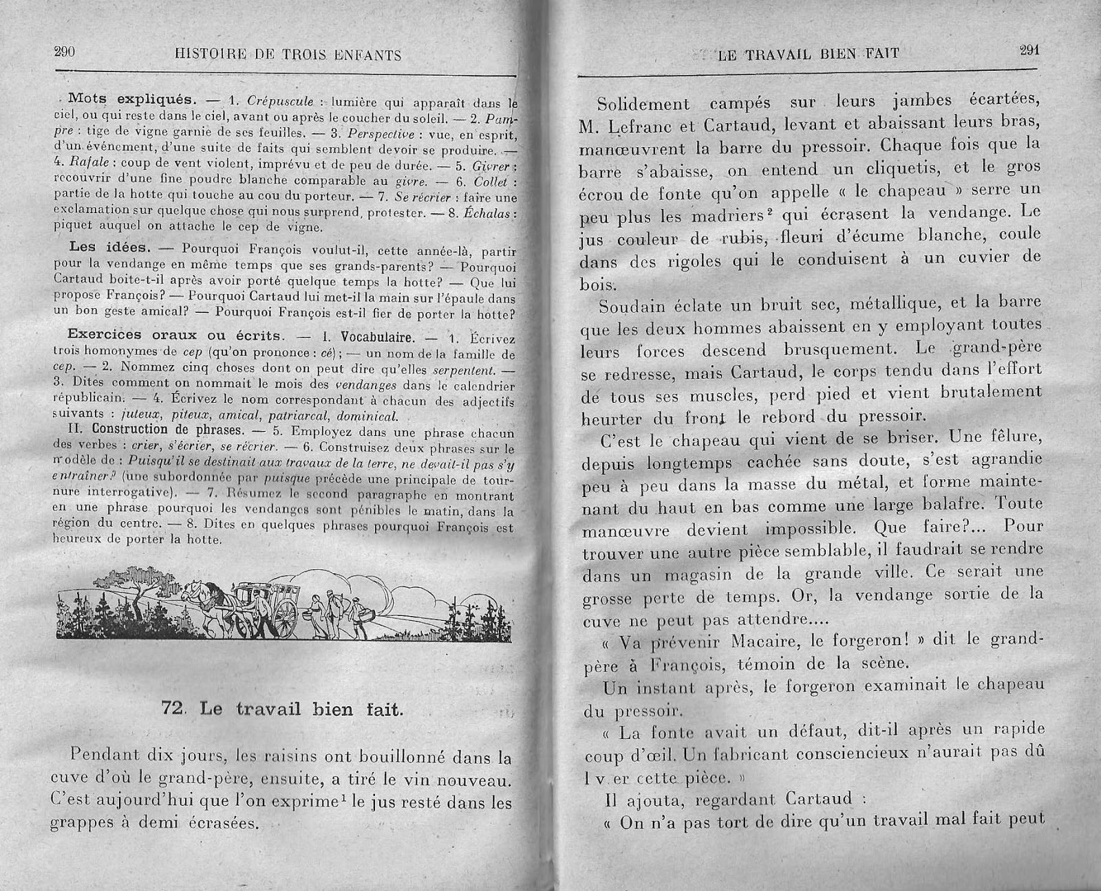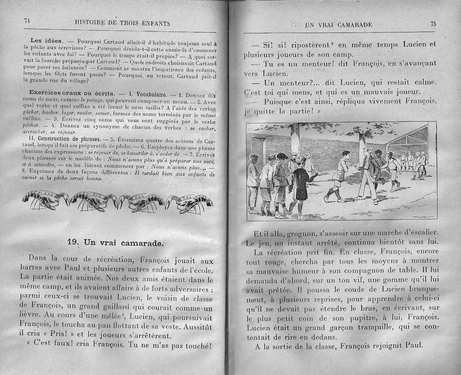 K. Seguin, Histoire de 3 enfants, livre de lecture courante Cours Moyen, 1927).