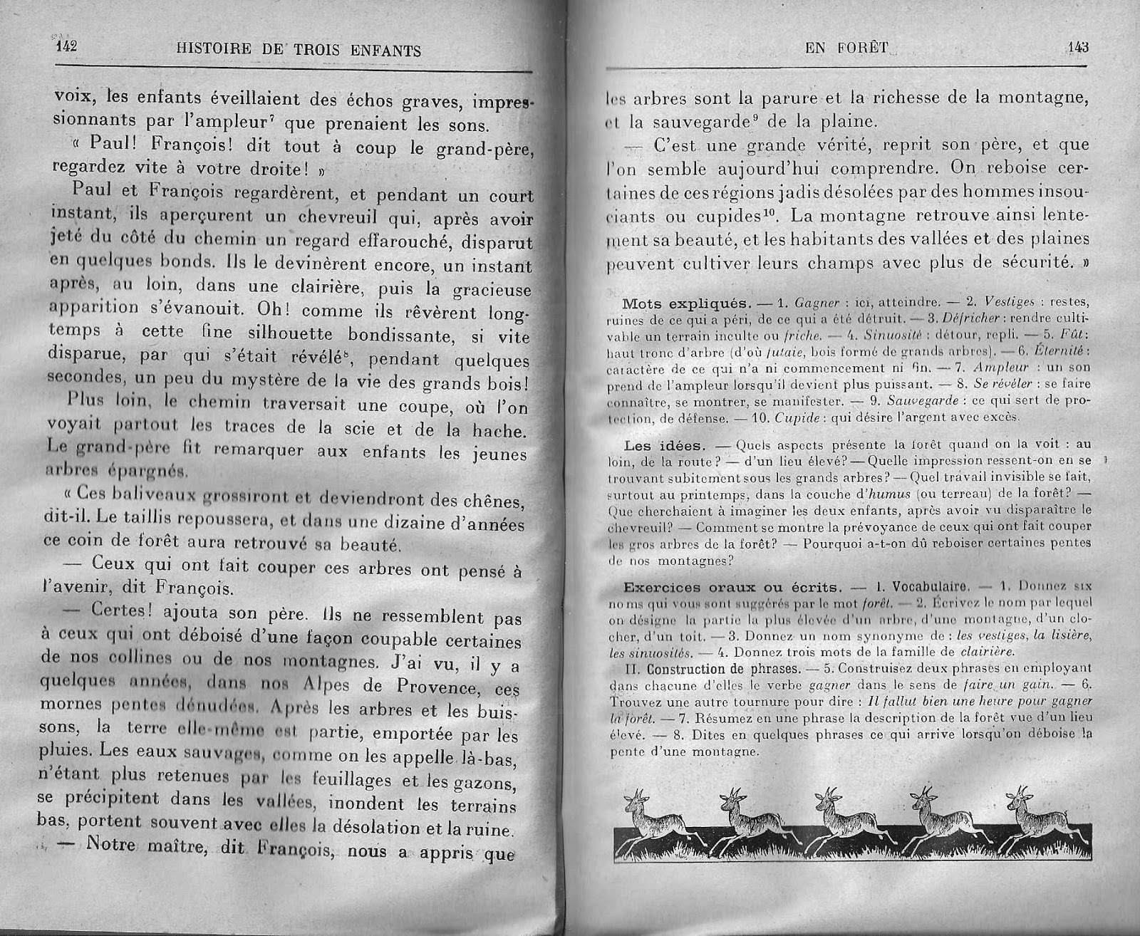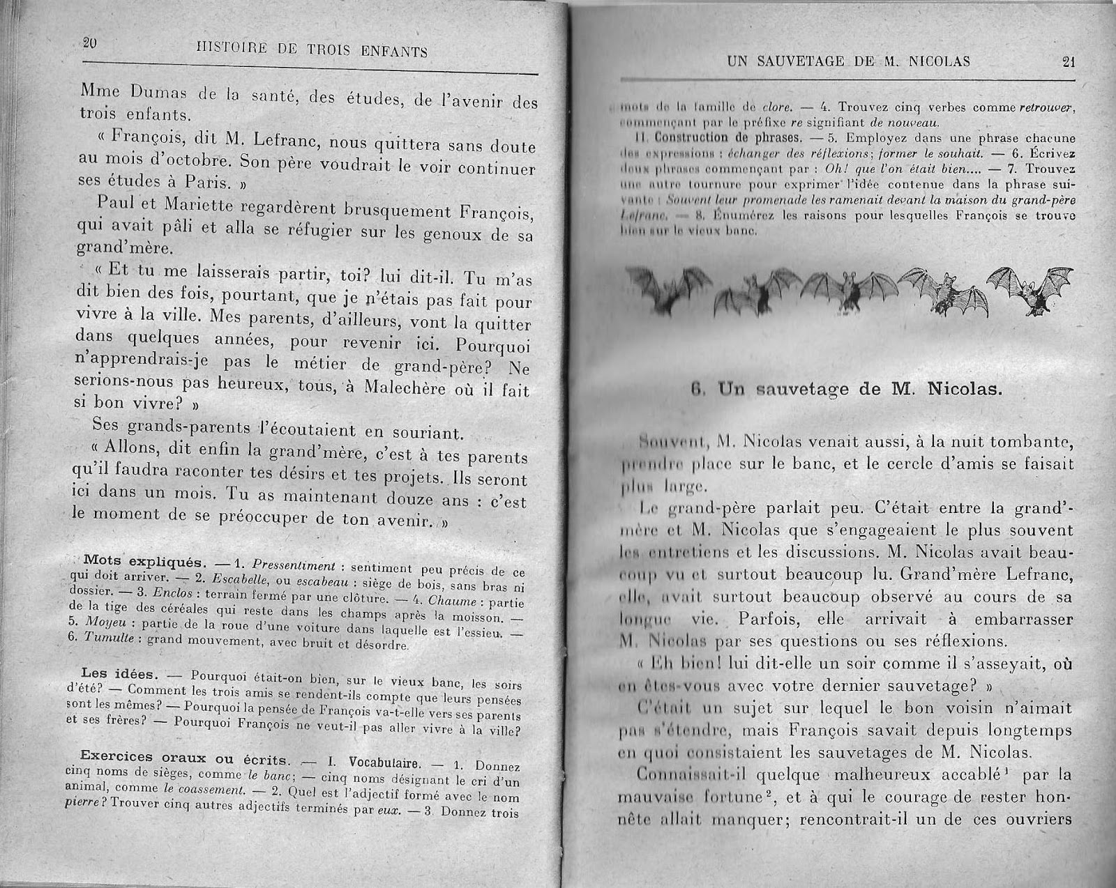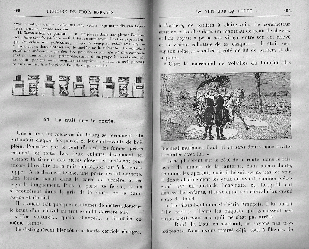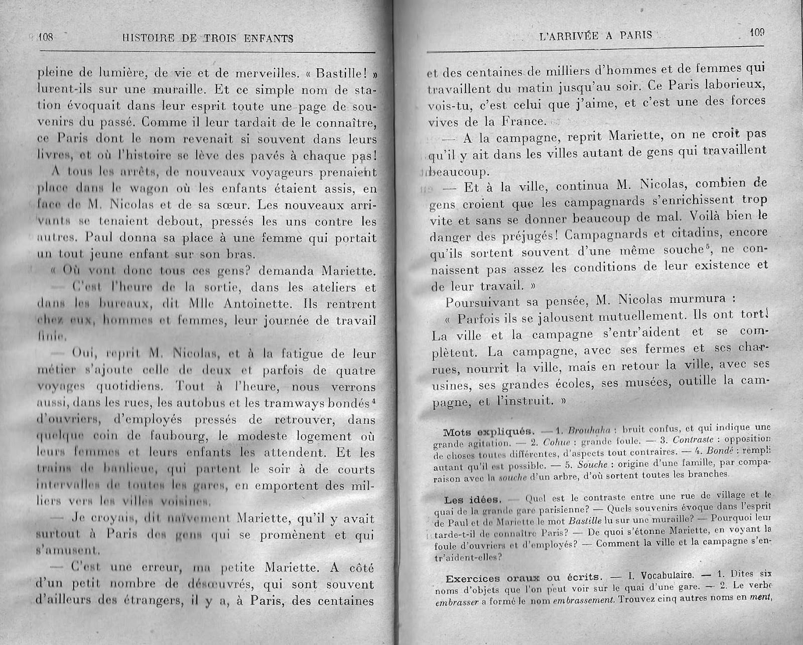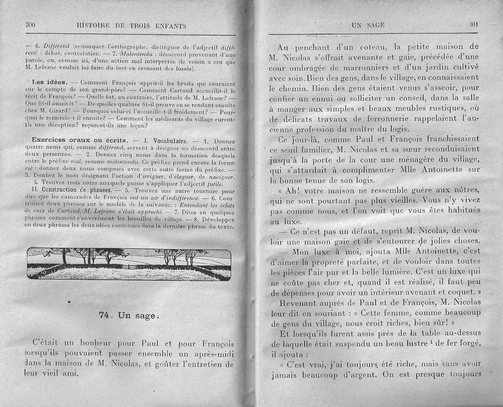 K. Seguin, Histoire de 3 enfants, livre de lecture courante Cours Moyen, 1927).