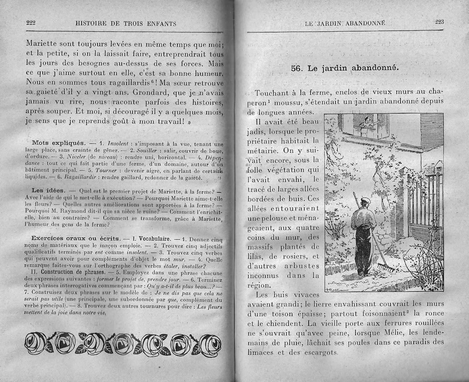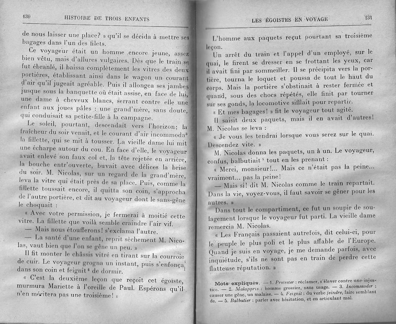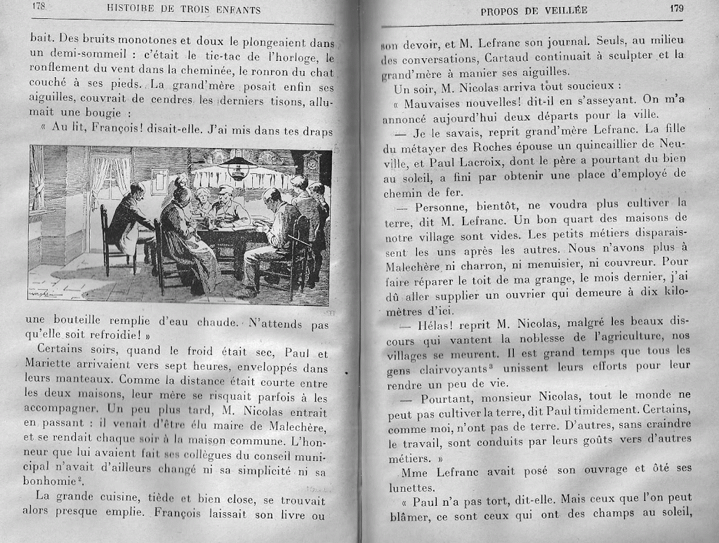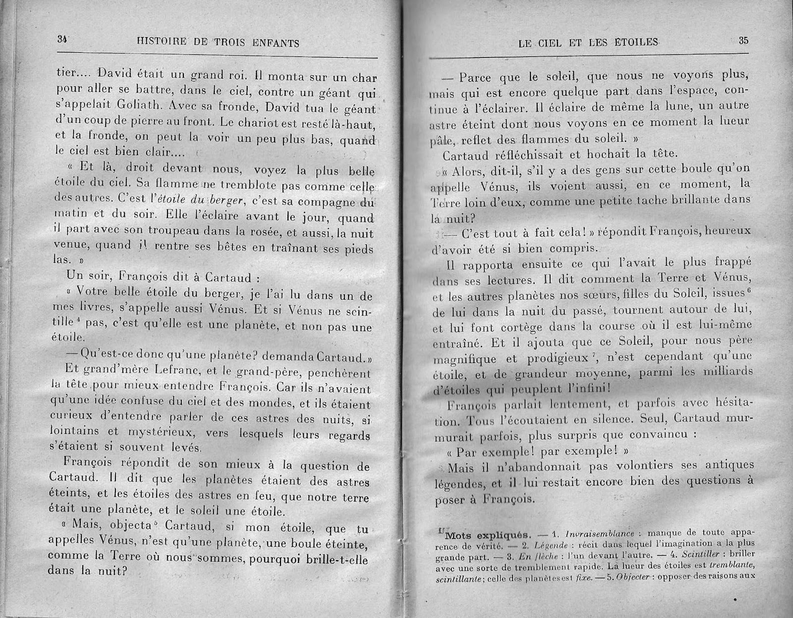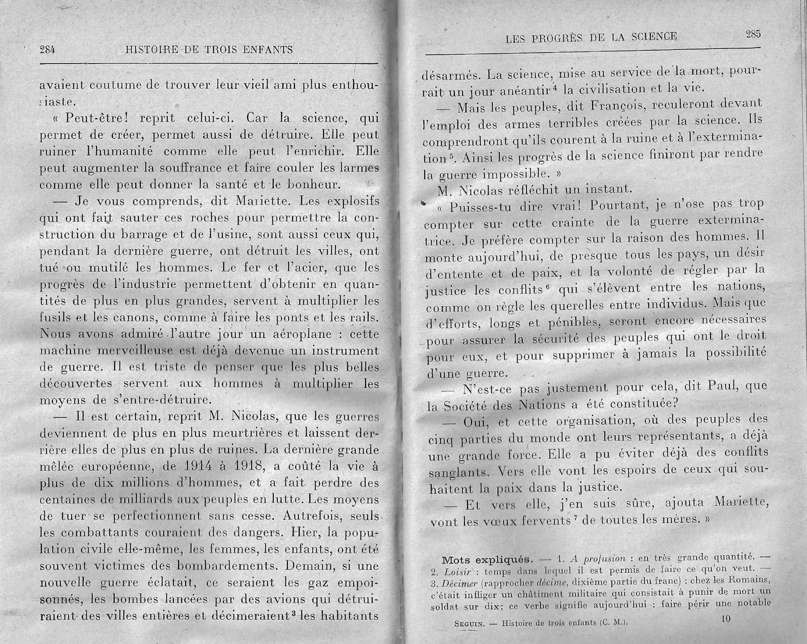 K. Seguin, Histoire de 3 enfants, livre de lecture courante Cours Moyen, 1927).