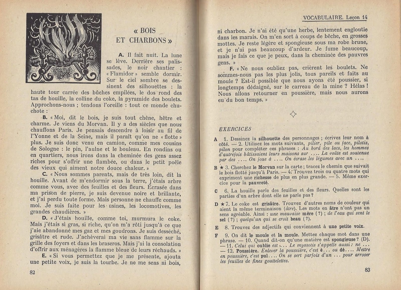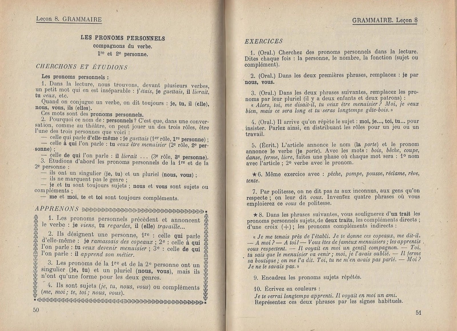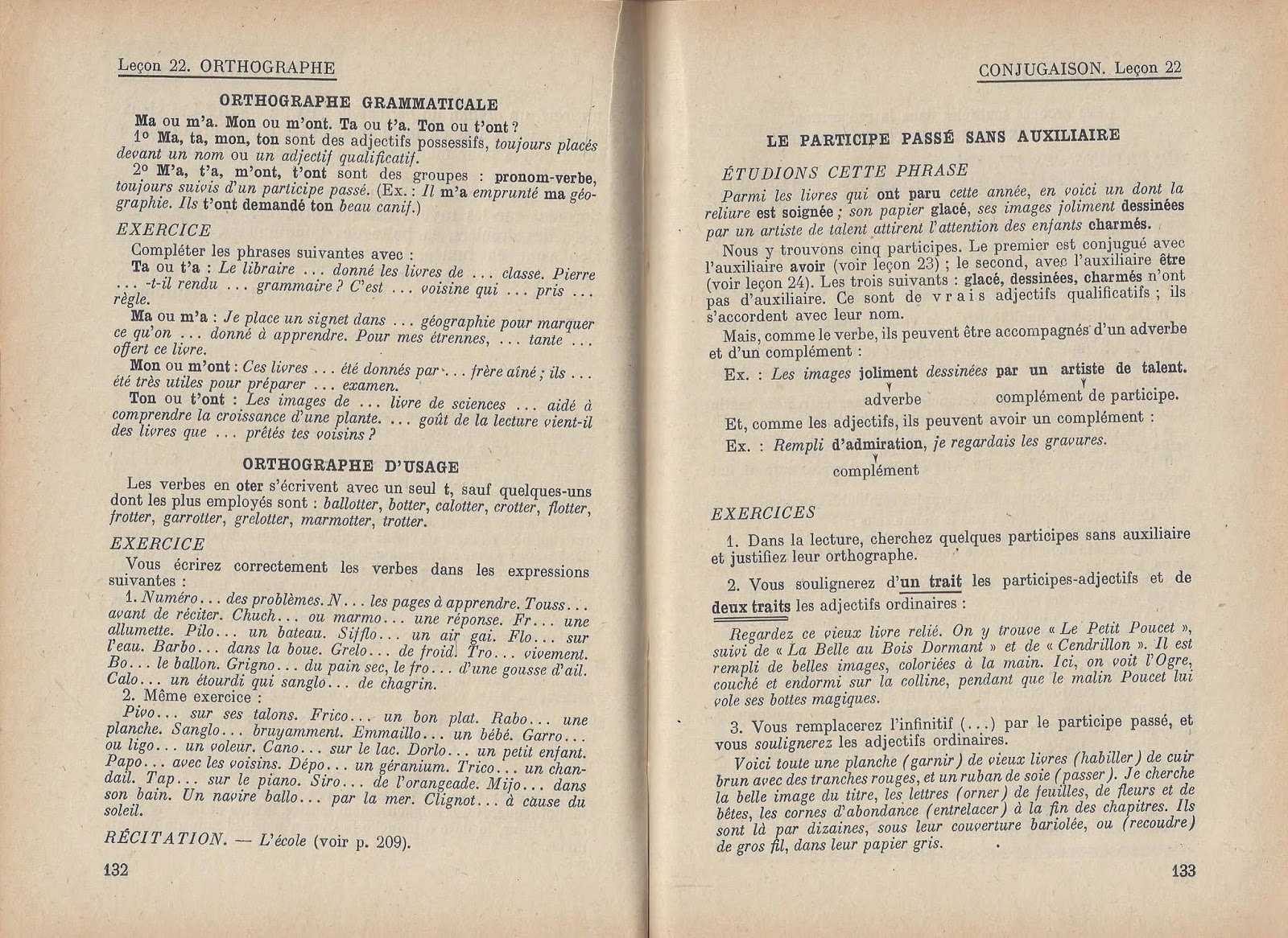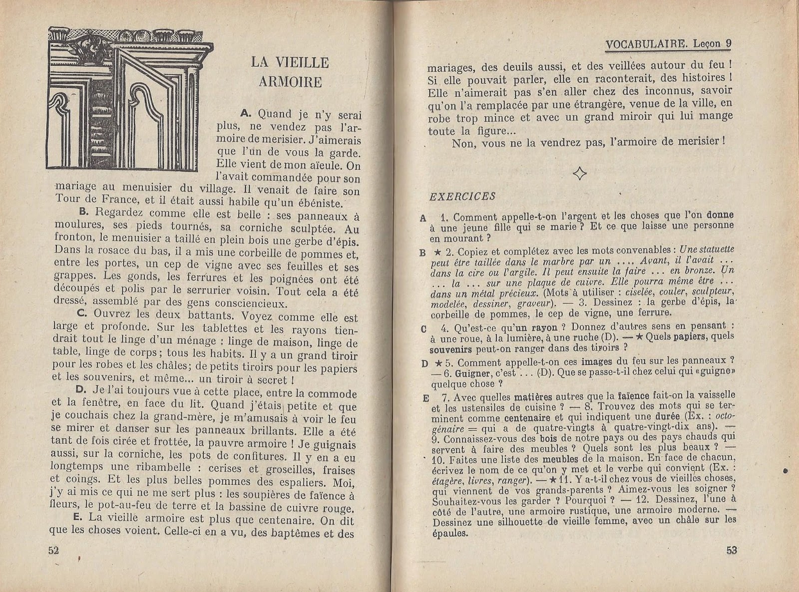 Le français Cours Moyen et classes de 8e et 7e. Livre de lecture, vocabulaire, orthographe, grammaire. Éditions Bourrelier, 1952.