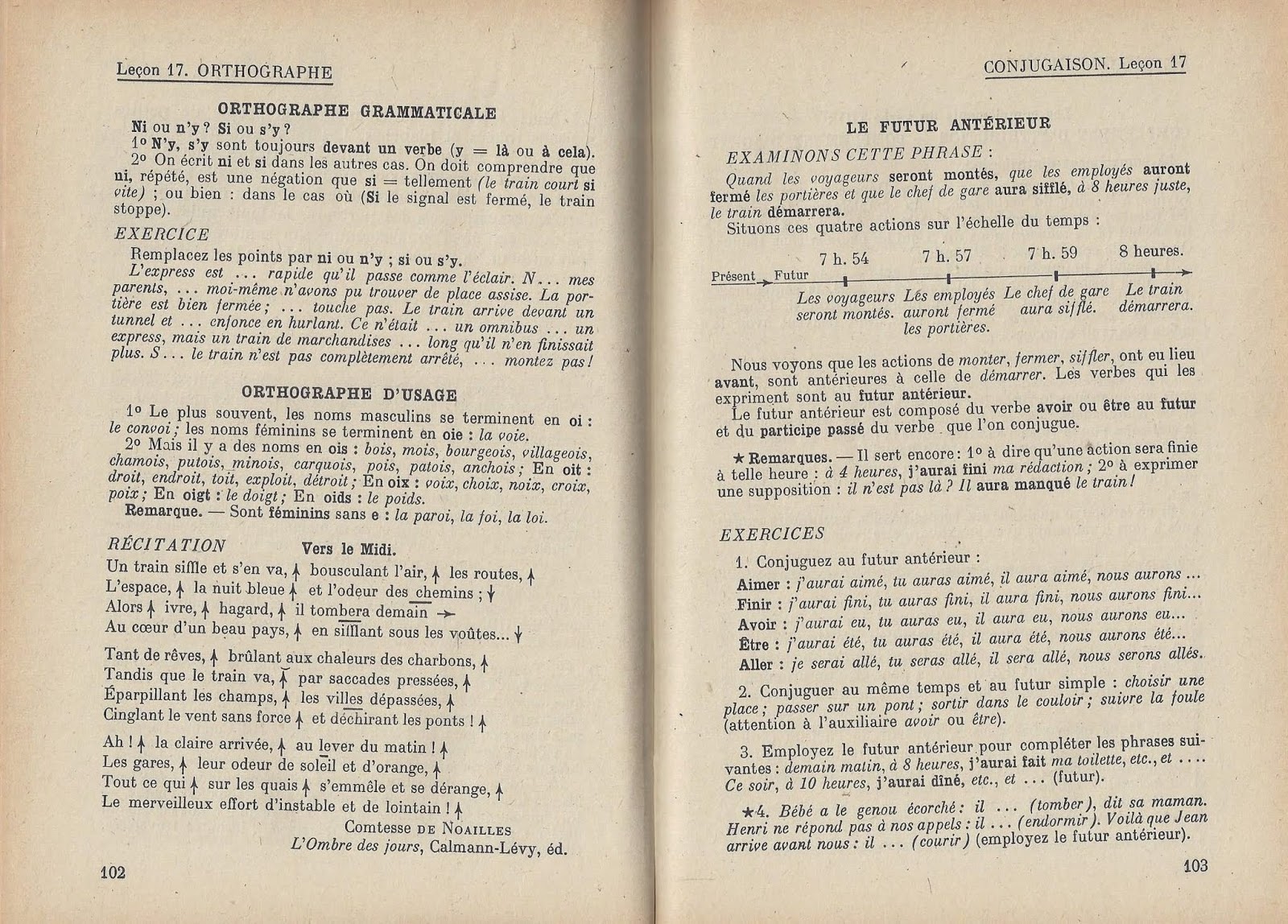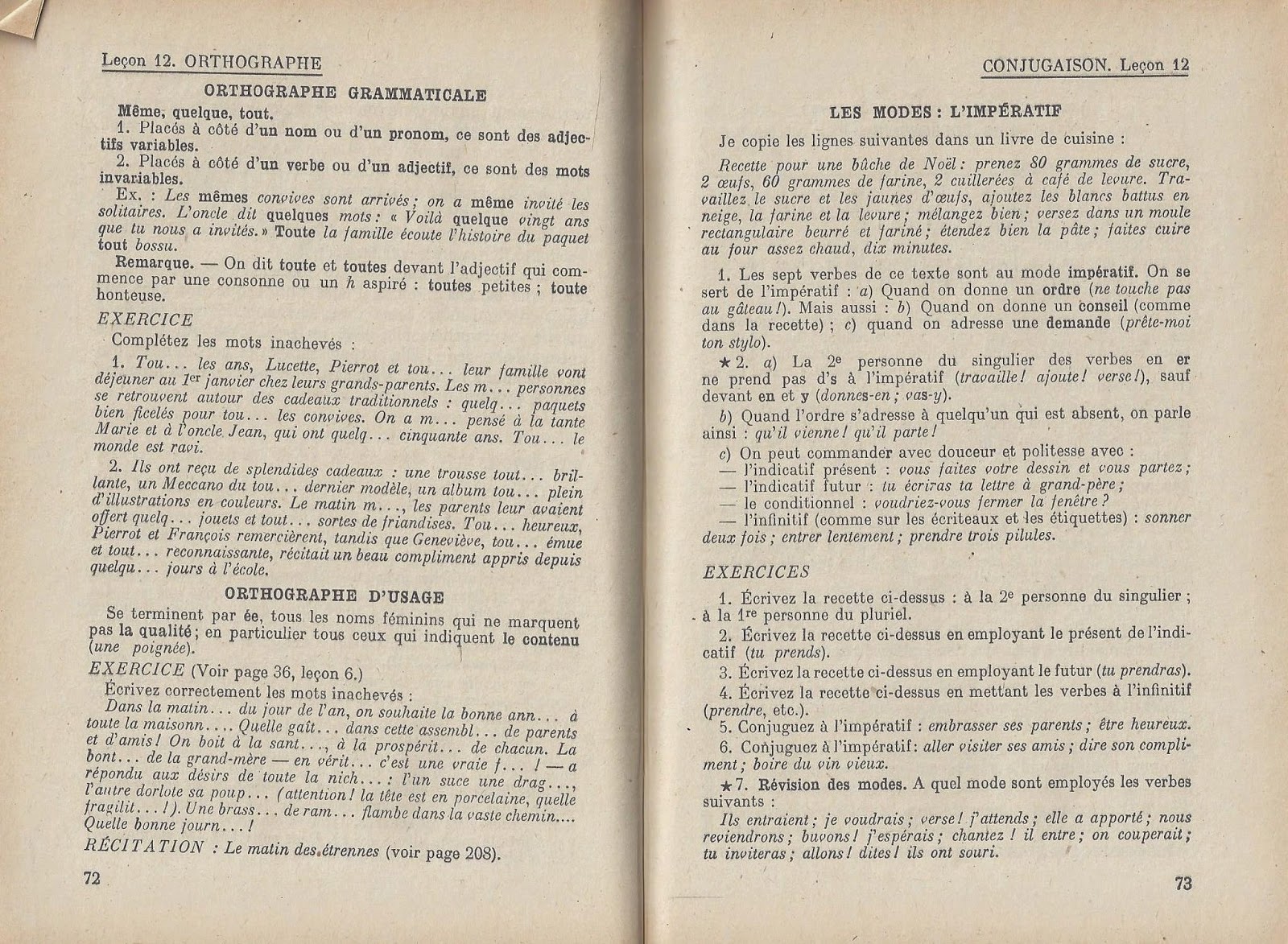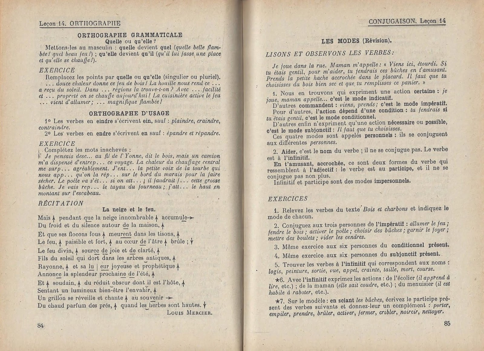 Le français Cours Moyen et classes de 8e et 7e. Livre de lecture, vocabulaire, orthographe, grammaire. Éditions Bourrelier, 1952.
