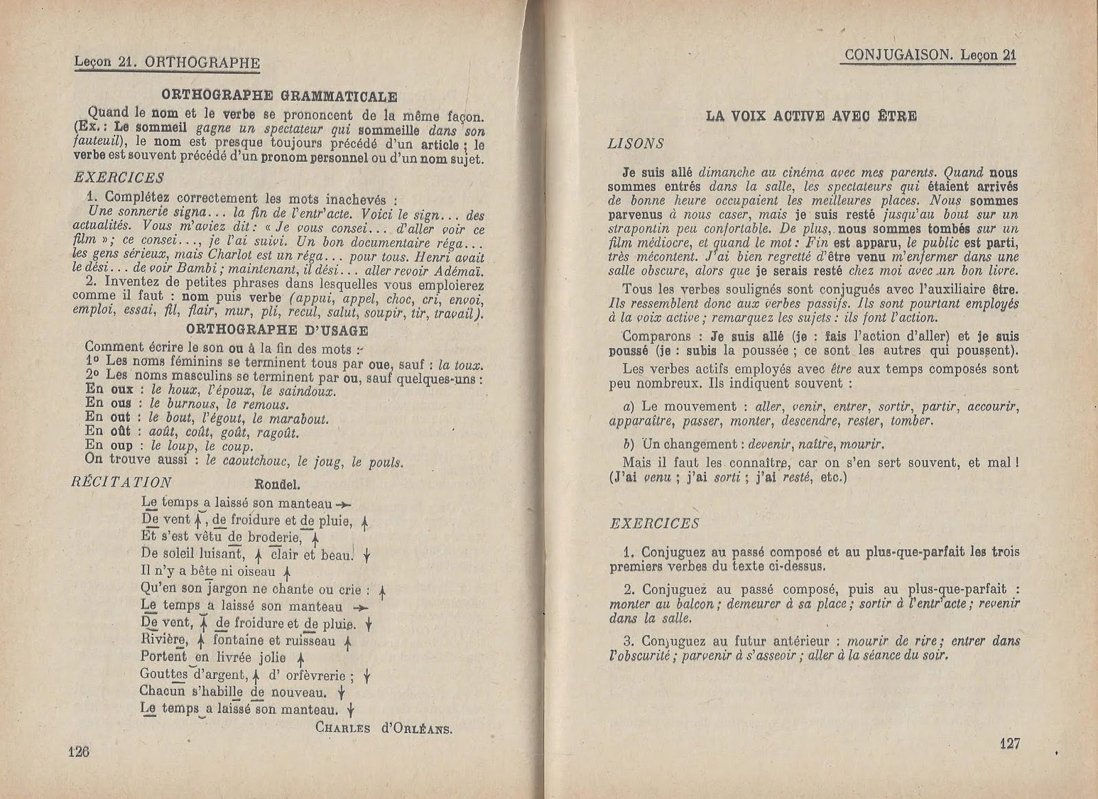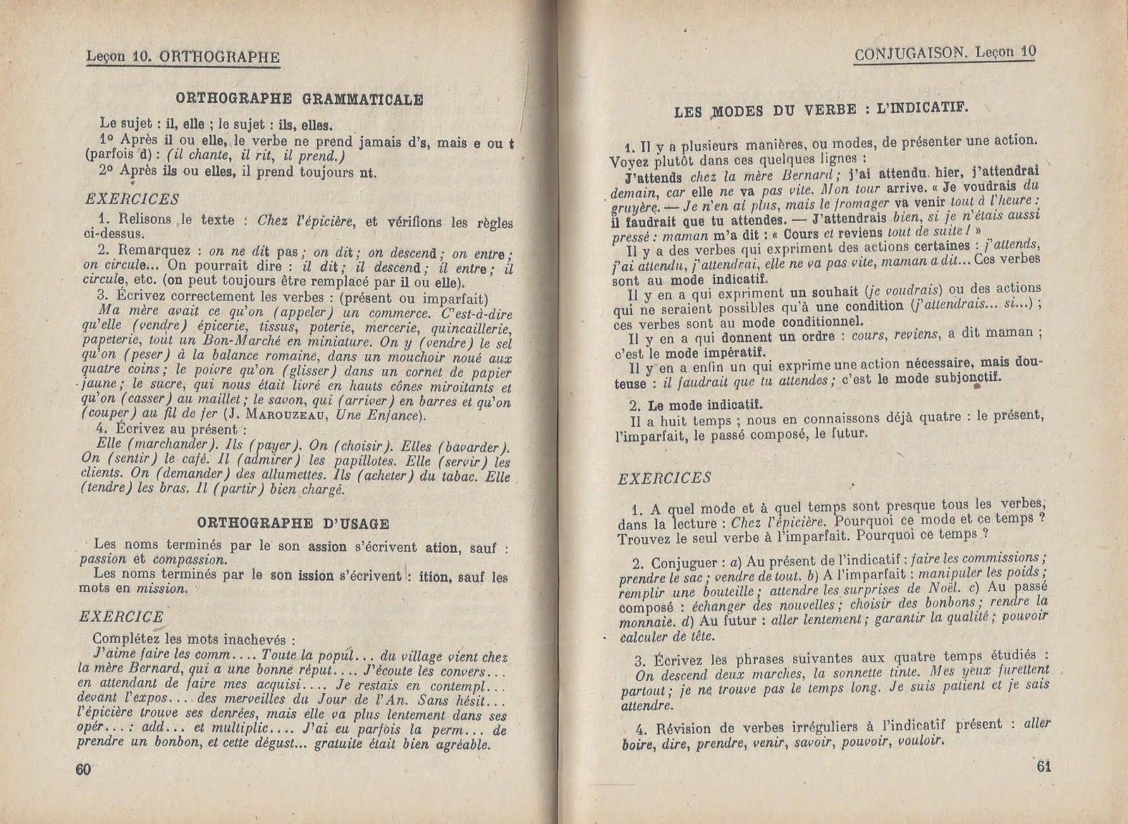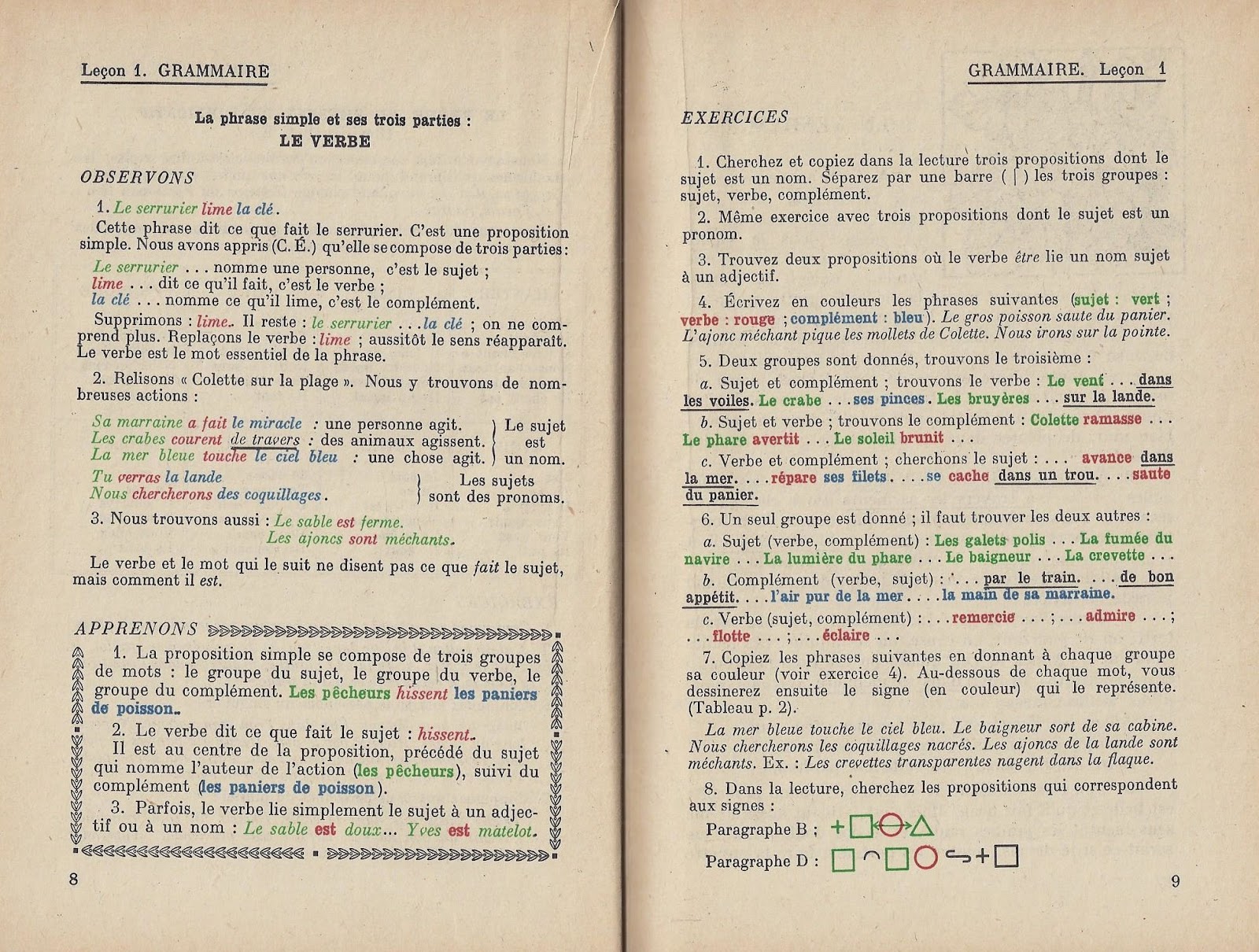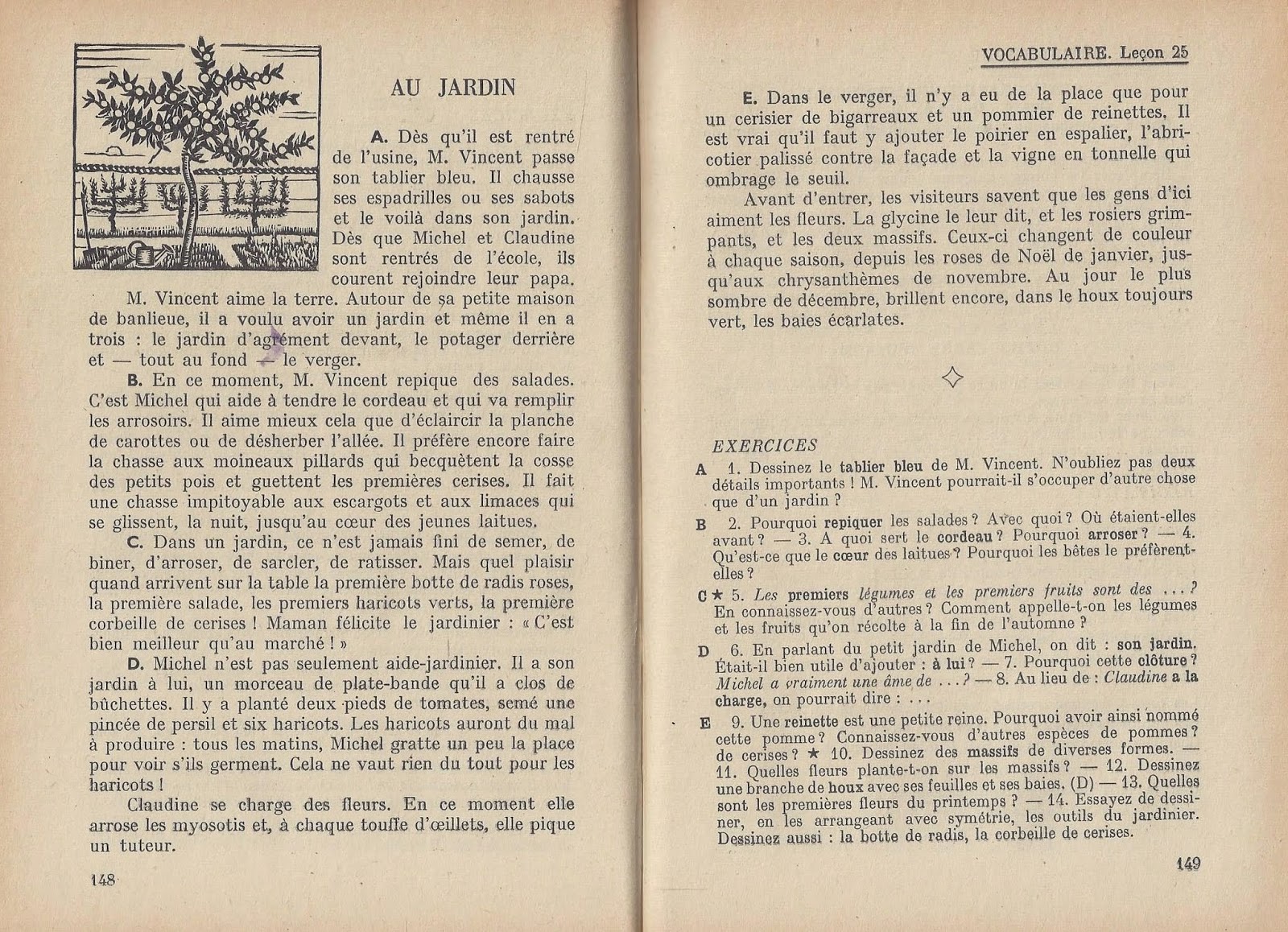 Le français Cours Moyen et classes de 8e et 7e. Livre de lecture, vocabulaire, orthographe, grammaire. Éditions Bourrelier, 1952.