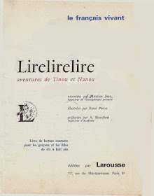 Livre de lecture courante pour les garçons et les filles de six à huit ans.Aventures de Tinou et Nanou, racontées par Maurice Jean, inspecteur de l'enseignement primaire, illustrées par René Péron, préfacées par A. Biancheri, inspecteur d'Académie, éditées par Larousse.