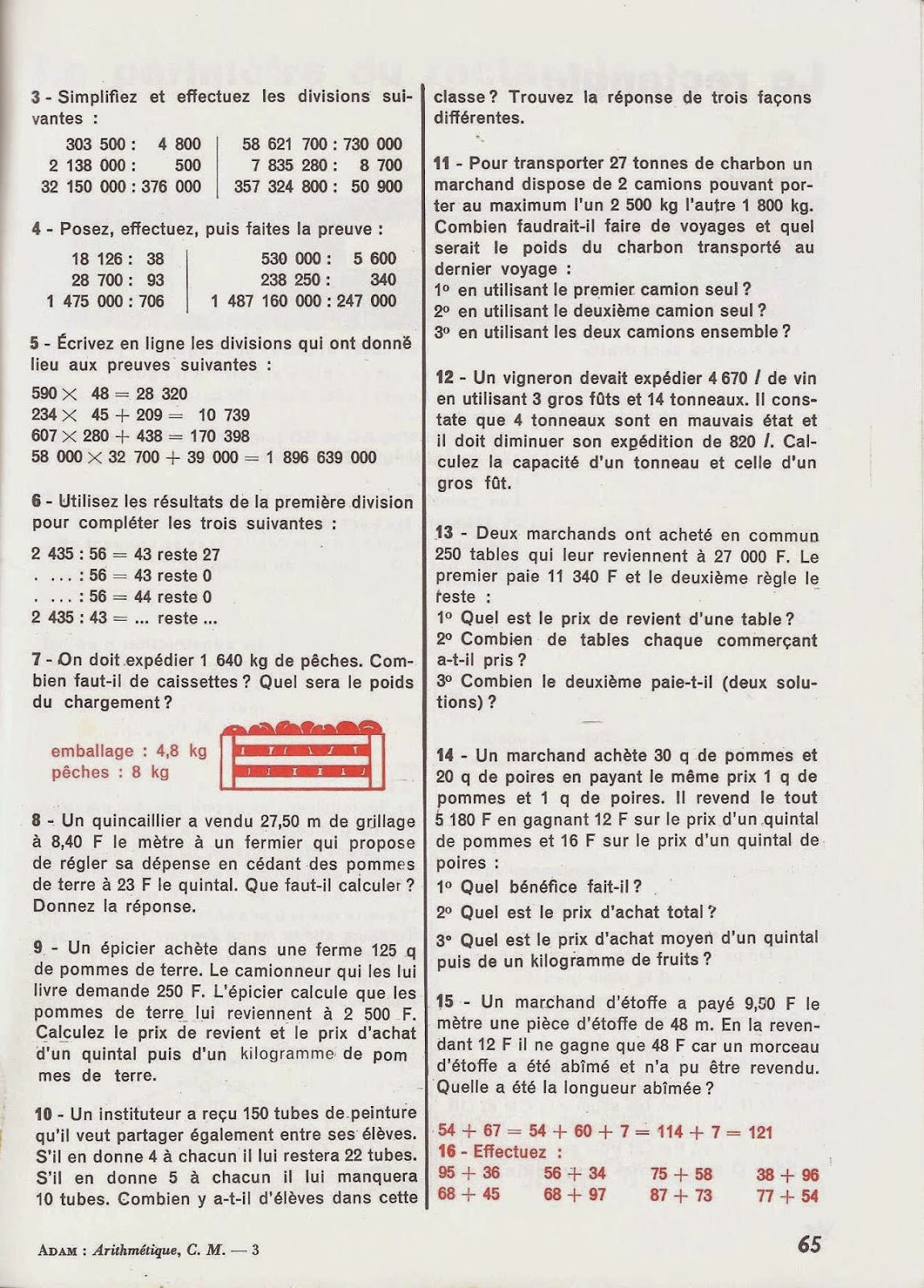Adam, Gouzou, Arithmétique, Cours Moyen, 1969 : grandes images
