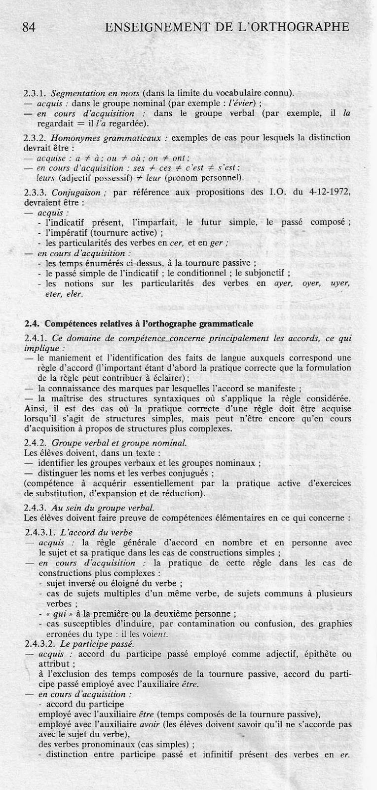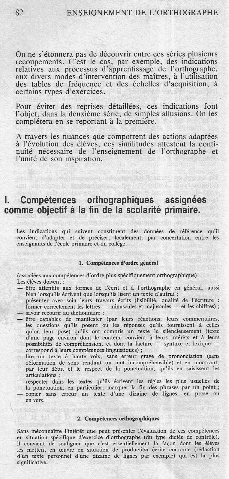 ENSEIGNEMENT DE L'ORTHOGRAPHE dans les écoles (arrêté du 14.06.77)