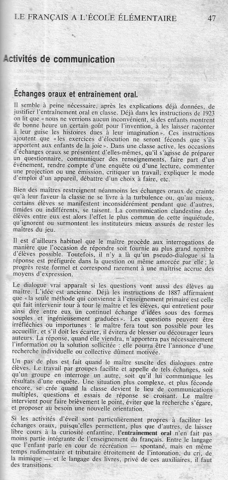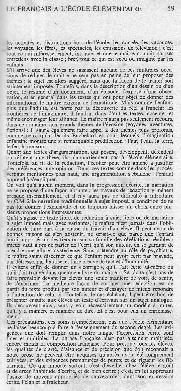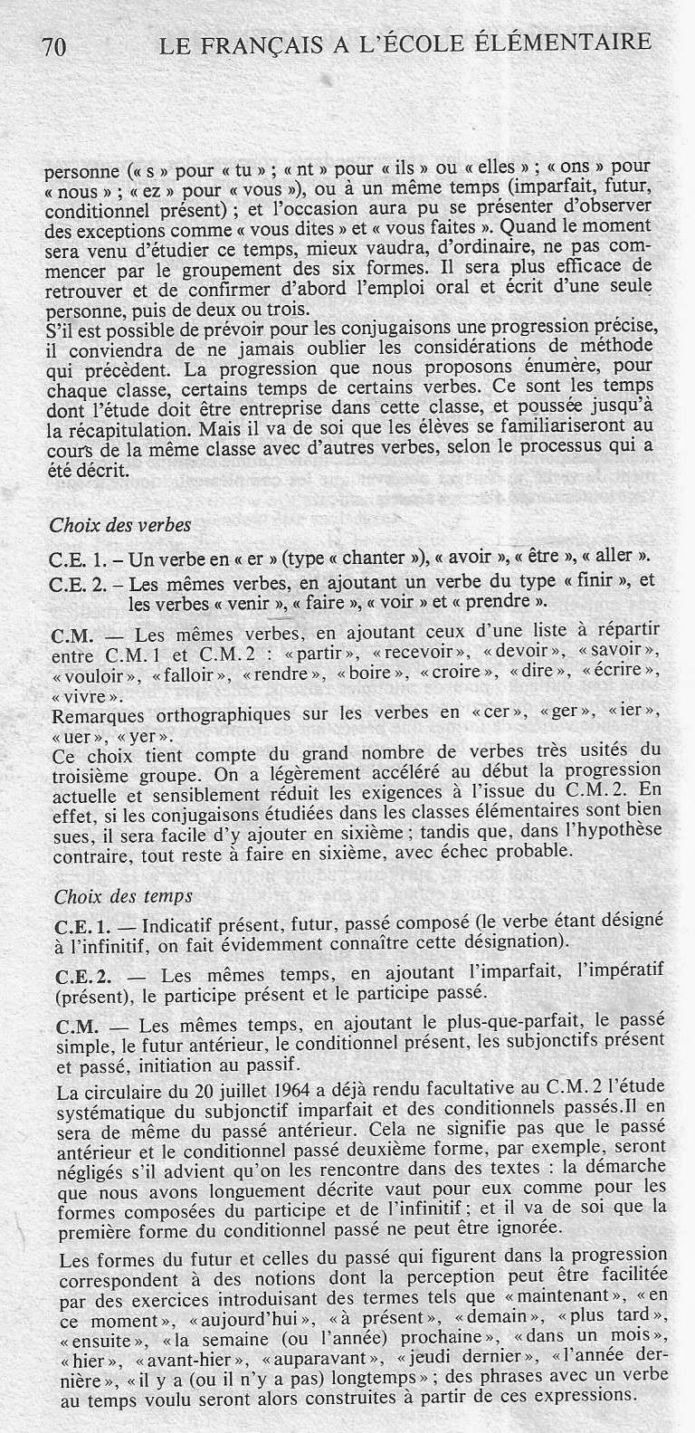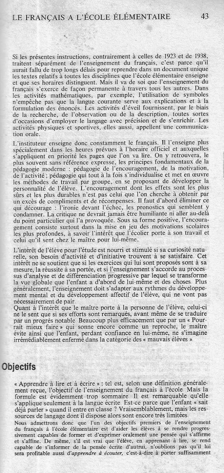 INSTRUCTIONS relatives à l'enseignement du FRANÇAIS à l'école élémentaire (circulaire du 4.12.72)