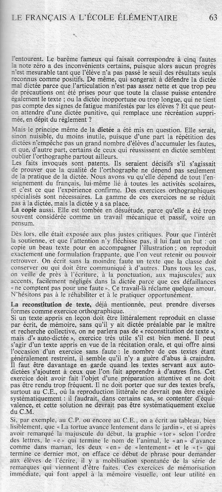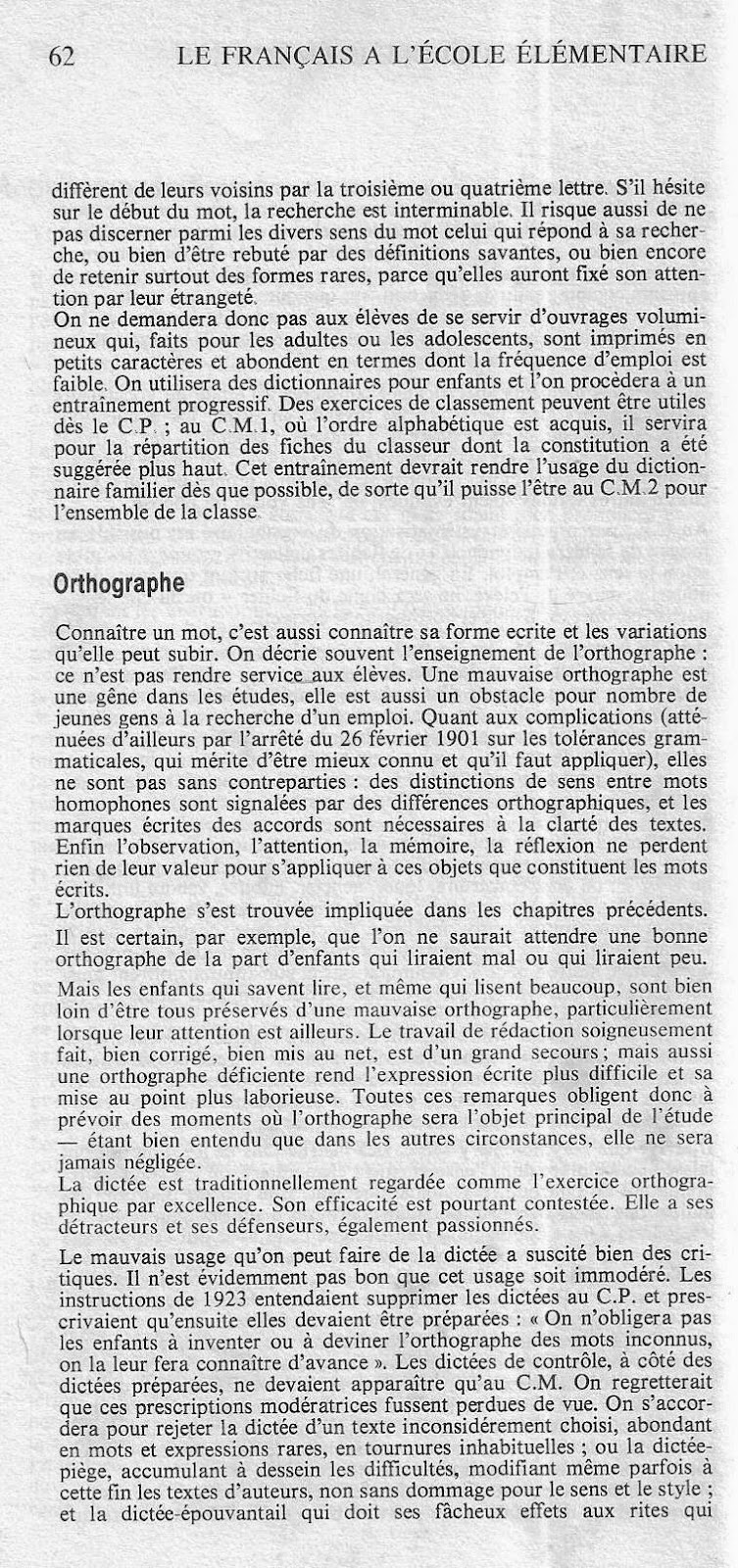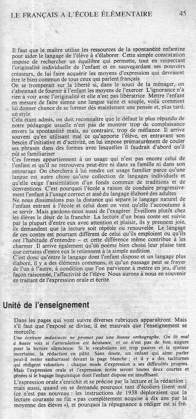 INSTRUCTIONS relatives à l'enseignement du FRANÇAIS à l'école élémentaire (circulaire du 4.12.72)