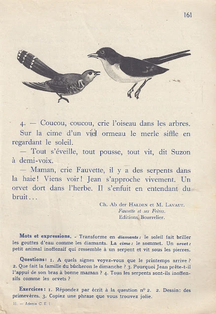 - Adenis, Cousteix, Clairs sentiers, pages choisies et lectures suivies CE1 (1957)