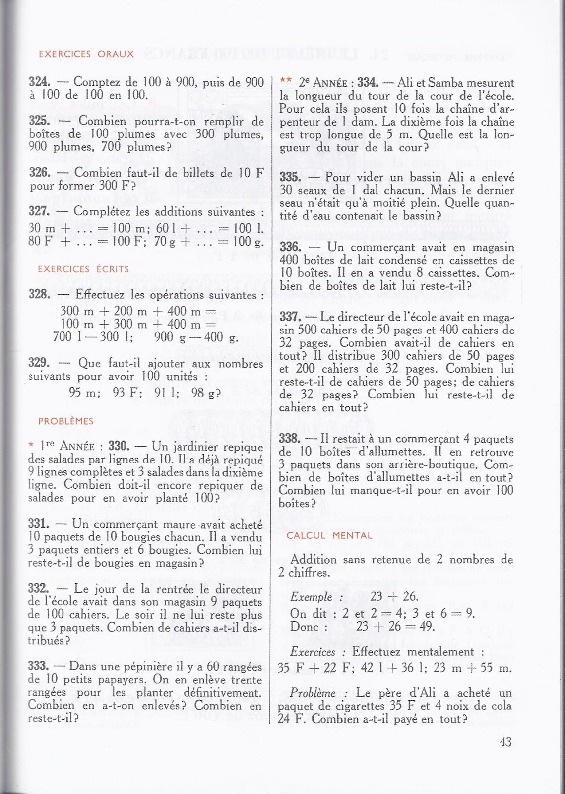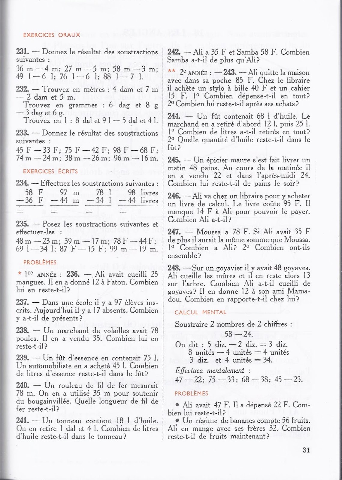 Auriol, Séguier, Calcul - Cours Élémentaire des écoles d'Afrique Noire (1958)
