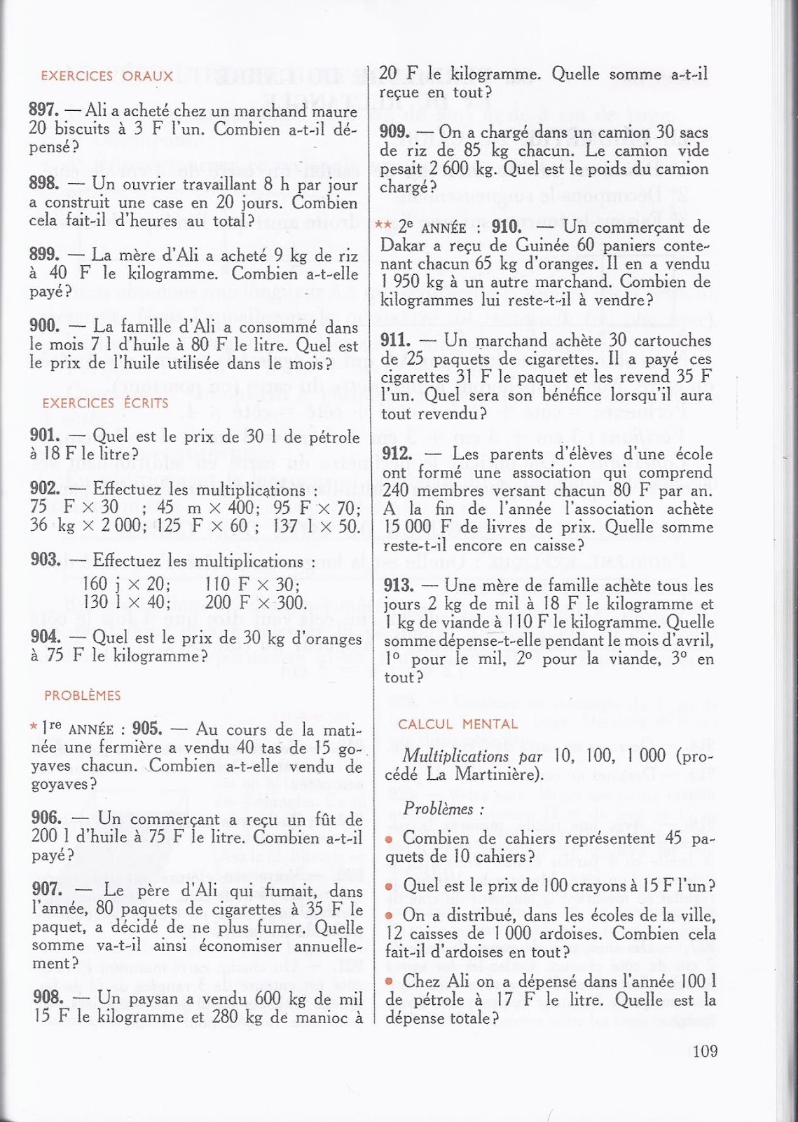 Auriol, Séguier, Calcul - Cours Élémentaire des écoles d'Afrique Noire (1958) : grandes images