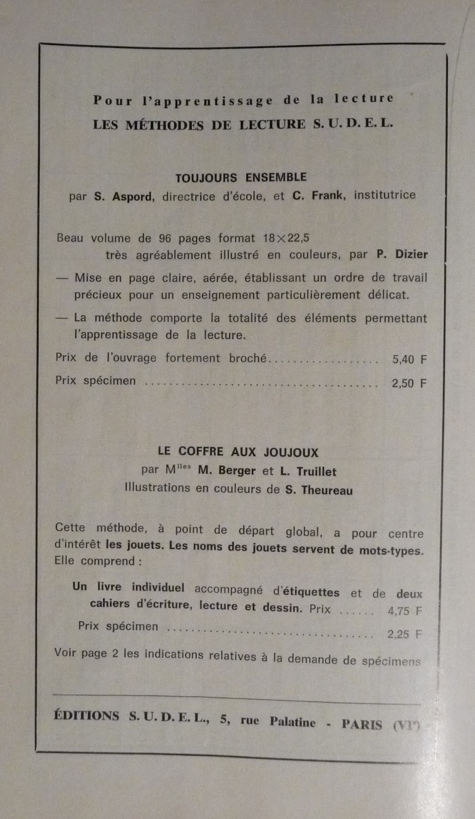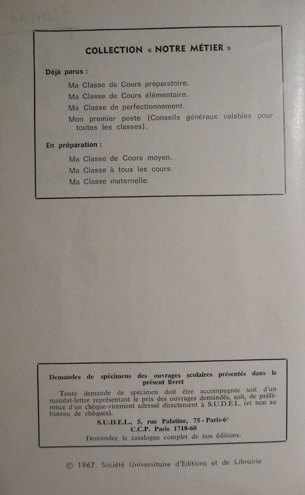 Sudel, Ma classe de cours préparatoire (1967)